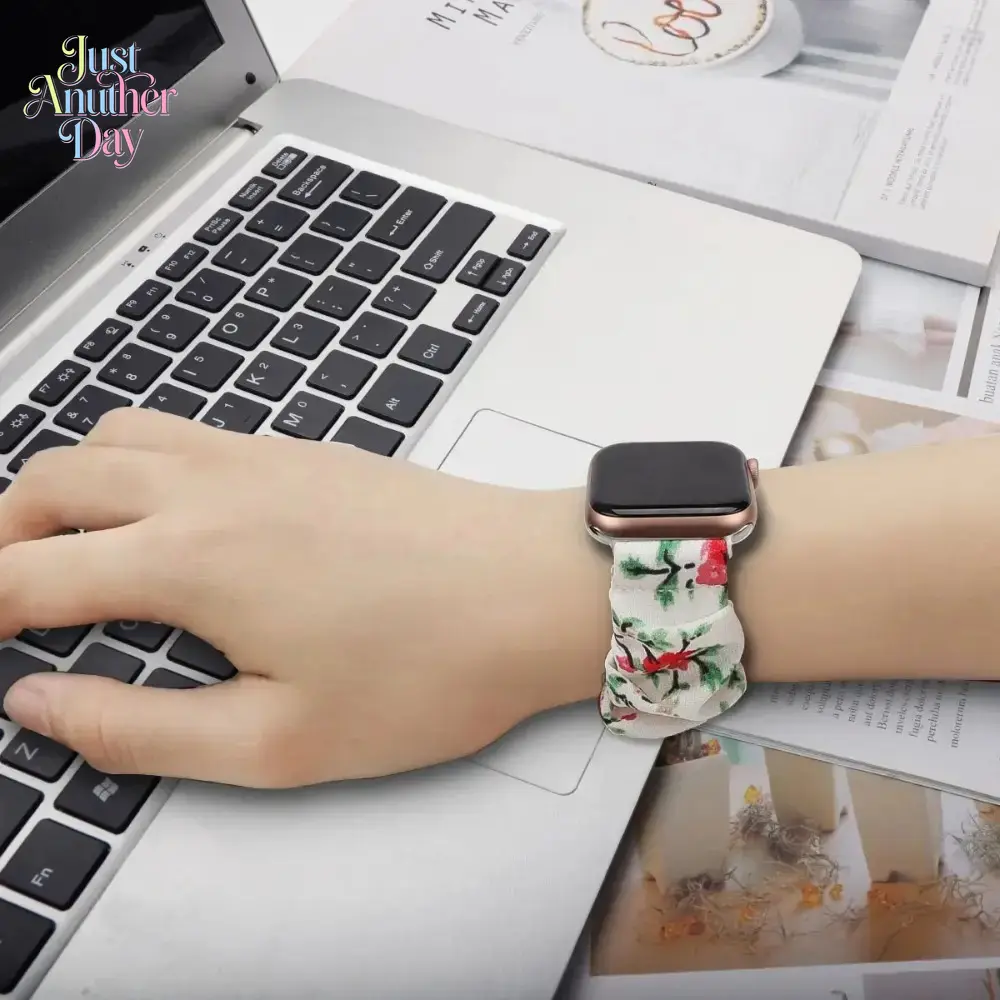 Cute Printed Scrunchie Watch Band – Elastic Replacement Strap for Apple Watch, Fits 38–49mm