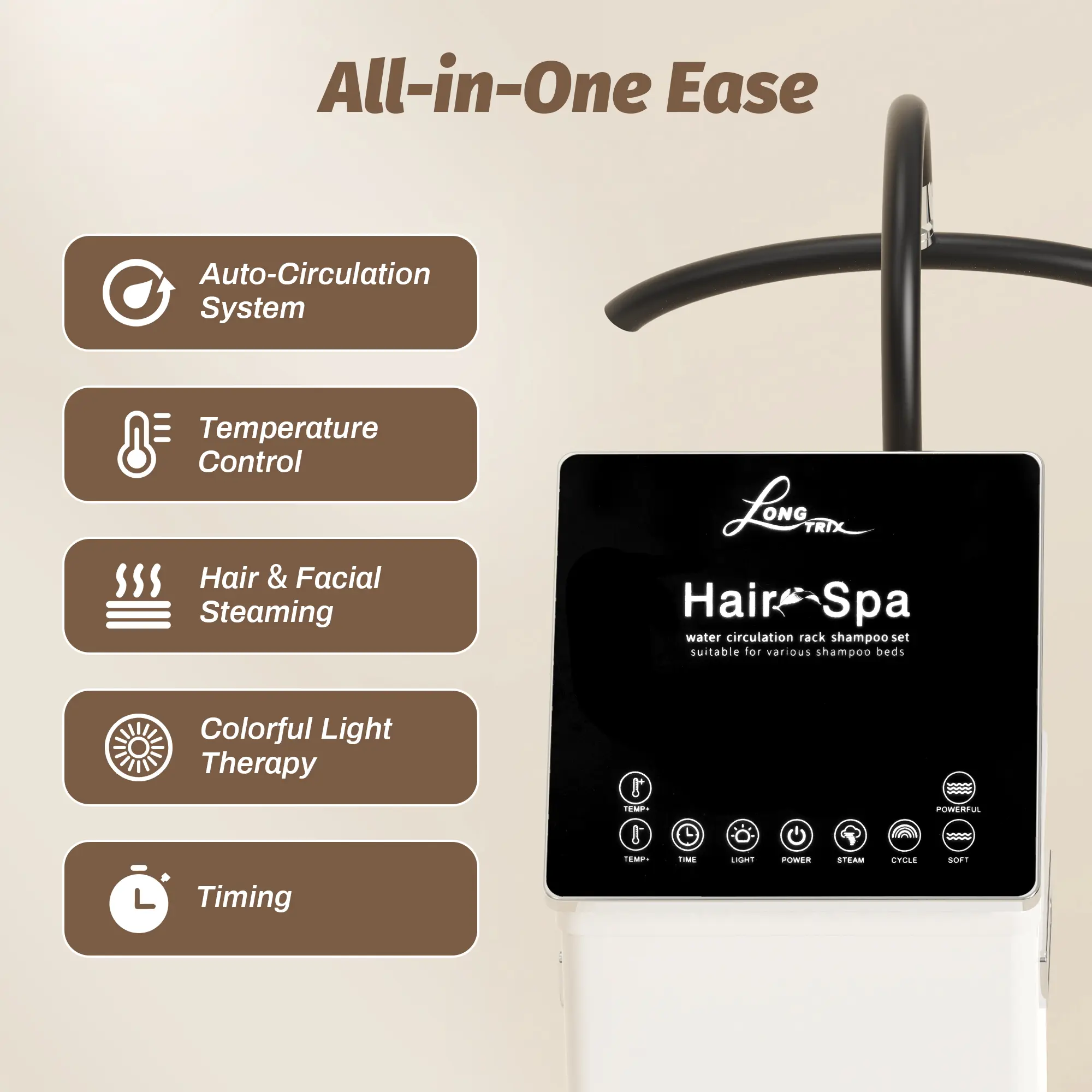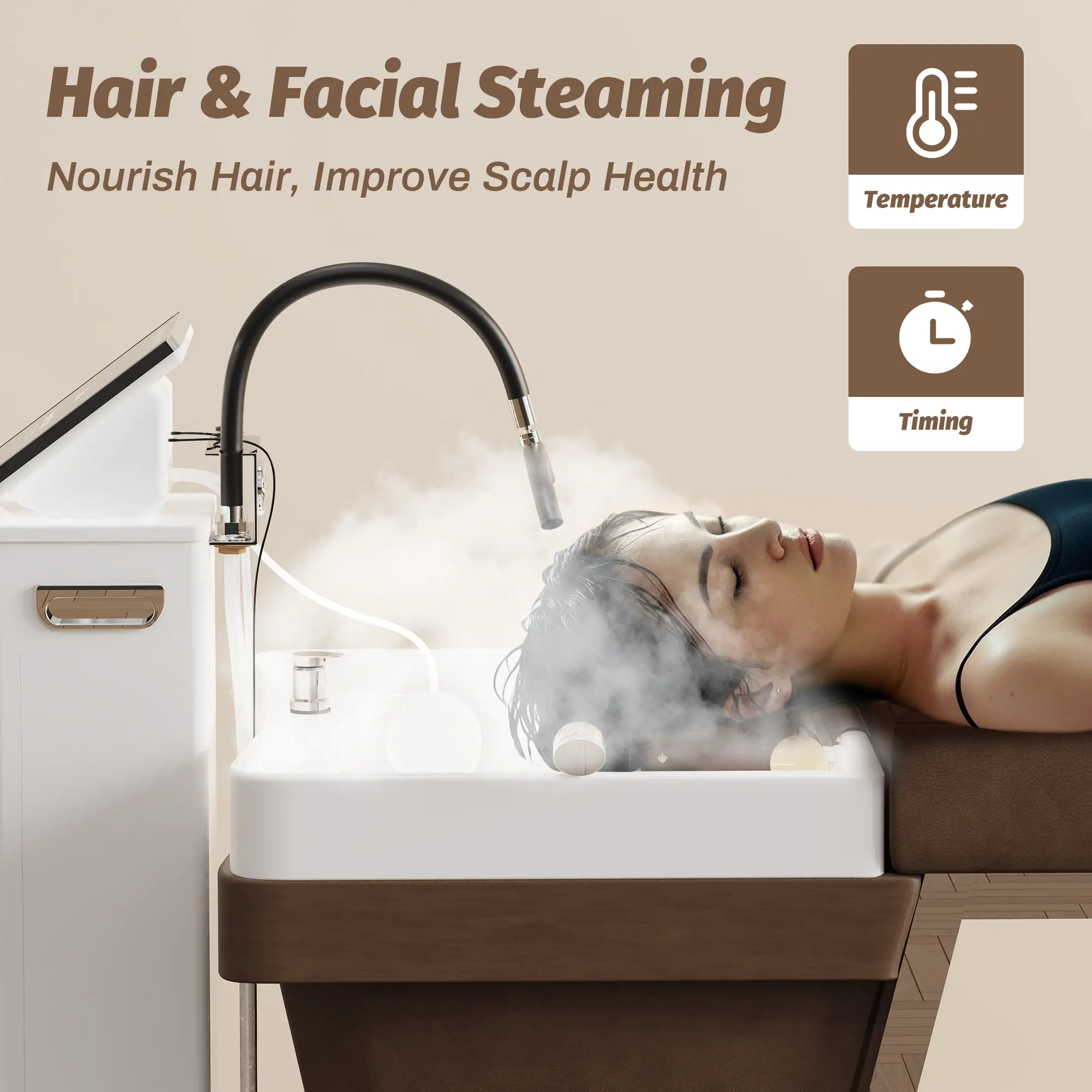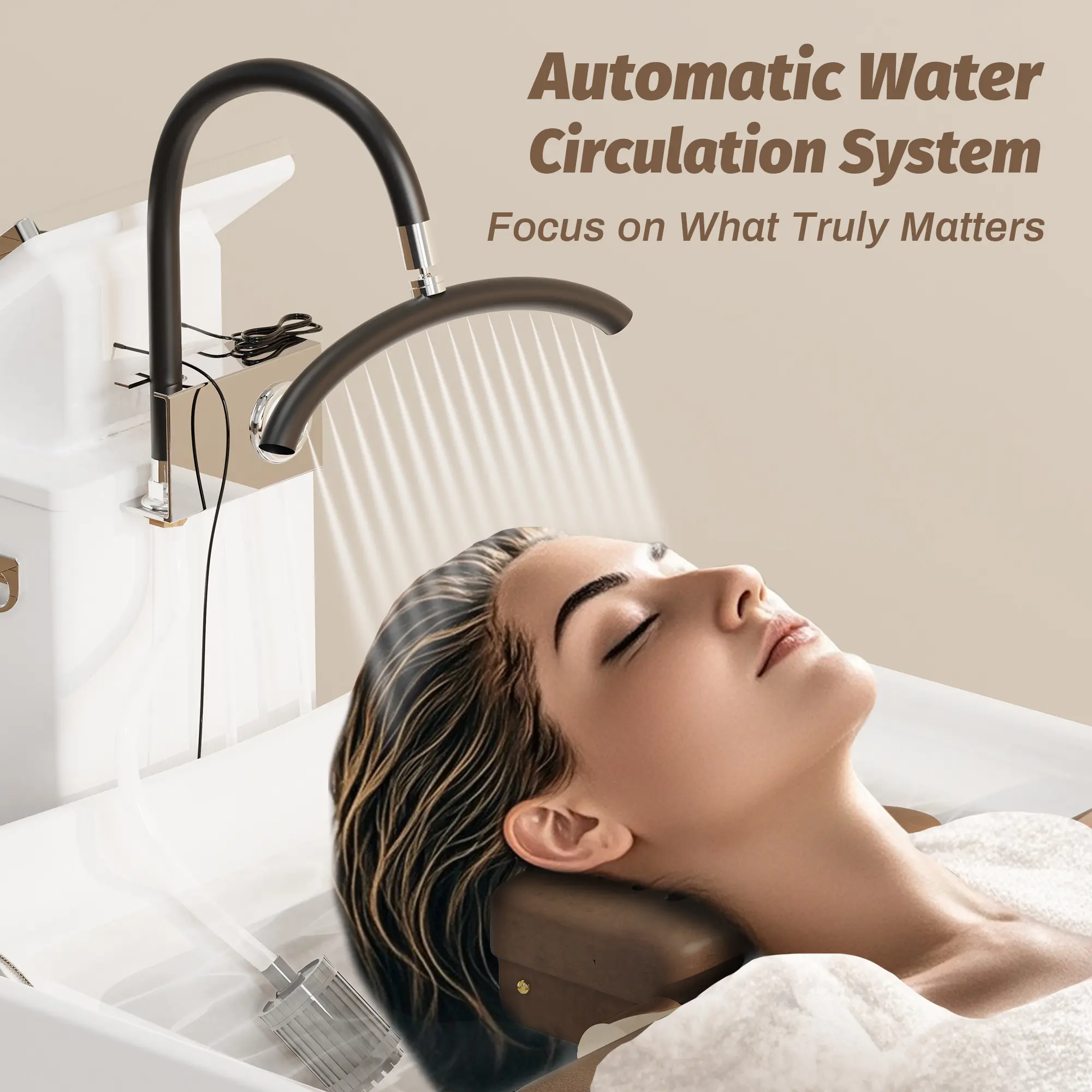 ☁️ Ergonomic Head Spa: Features a contoured neck support and an adjustable basin. Perfectly matches any client’s head position to reduce pressure and ensure total relaxation. 💆♀️