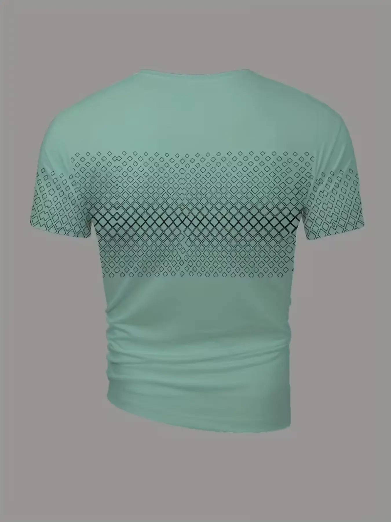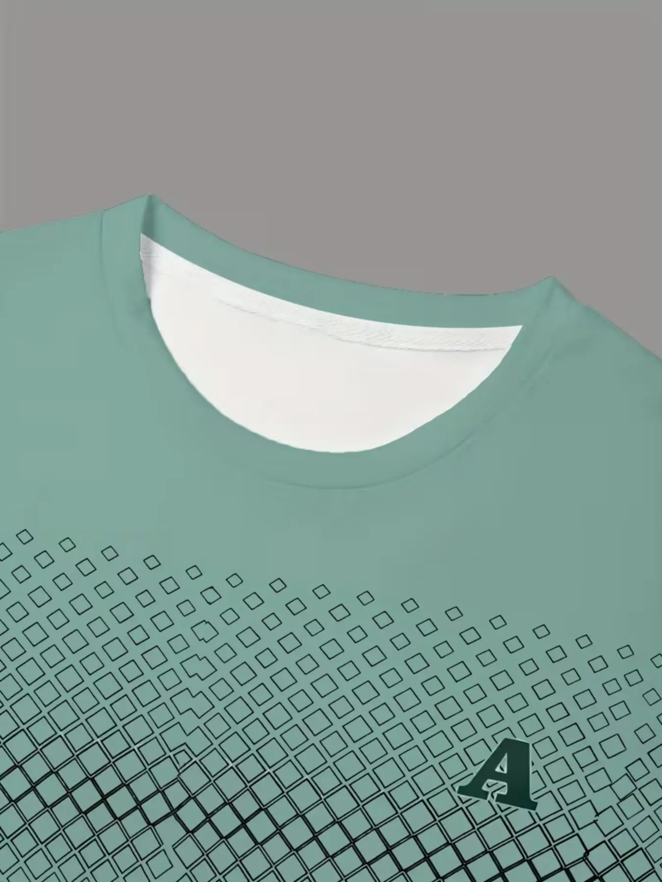 Summer New Geometric Pattern T-Shirt, Fashion Casual 3D Letter Print Sports Top, Simple Graphic Short Sleeve Streetwear Tee
