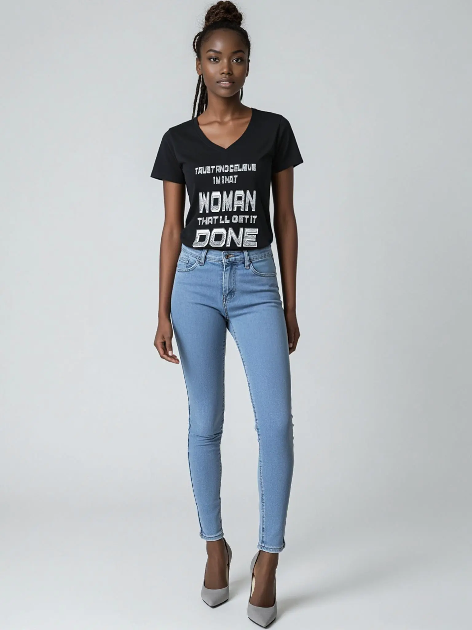 This 100% cotton women v-neck short sleeve t-shirt was created to get attention and makes a great gift for yourself or for someone that feels that she is that confident that certain tasks that is asked of her she's the one that can get it done.