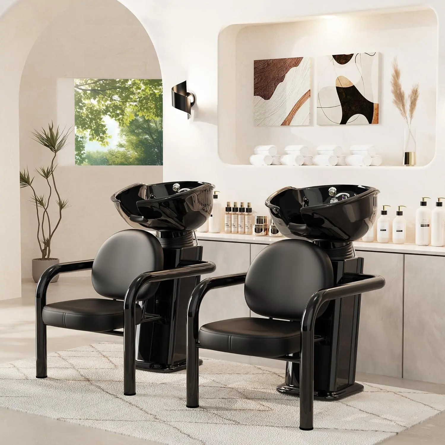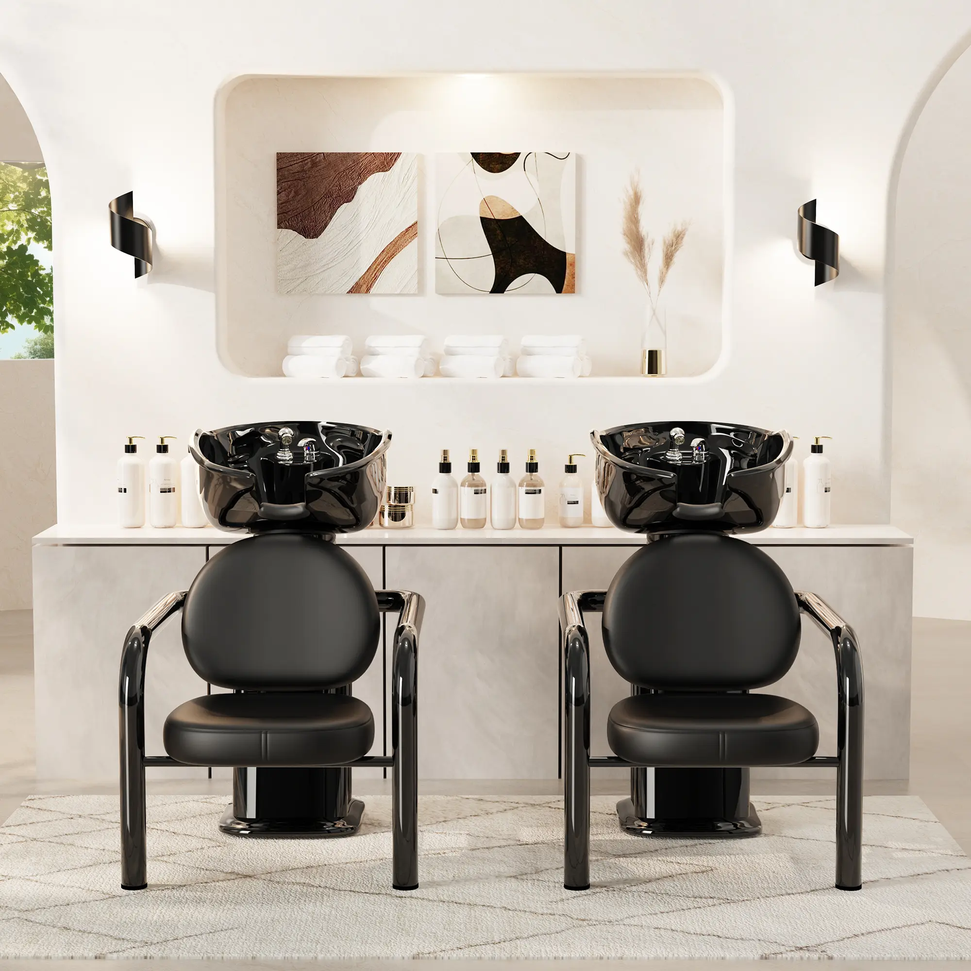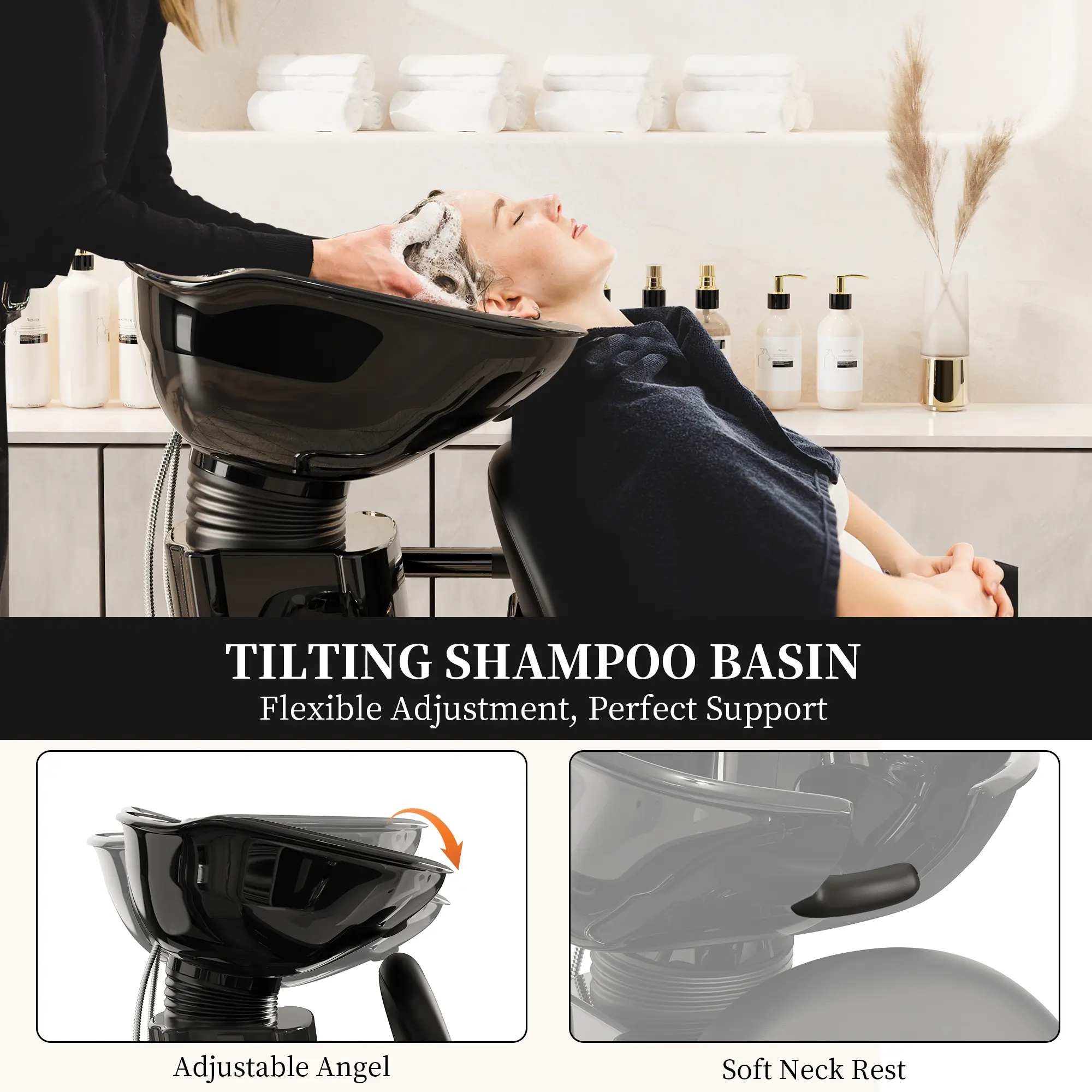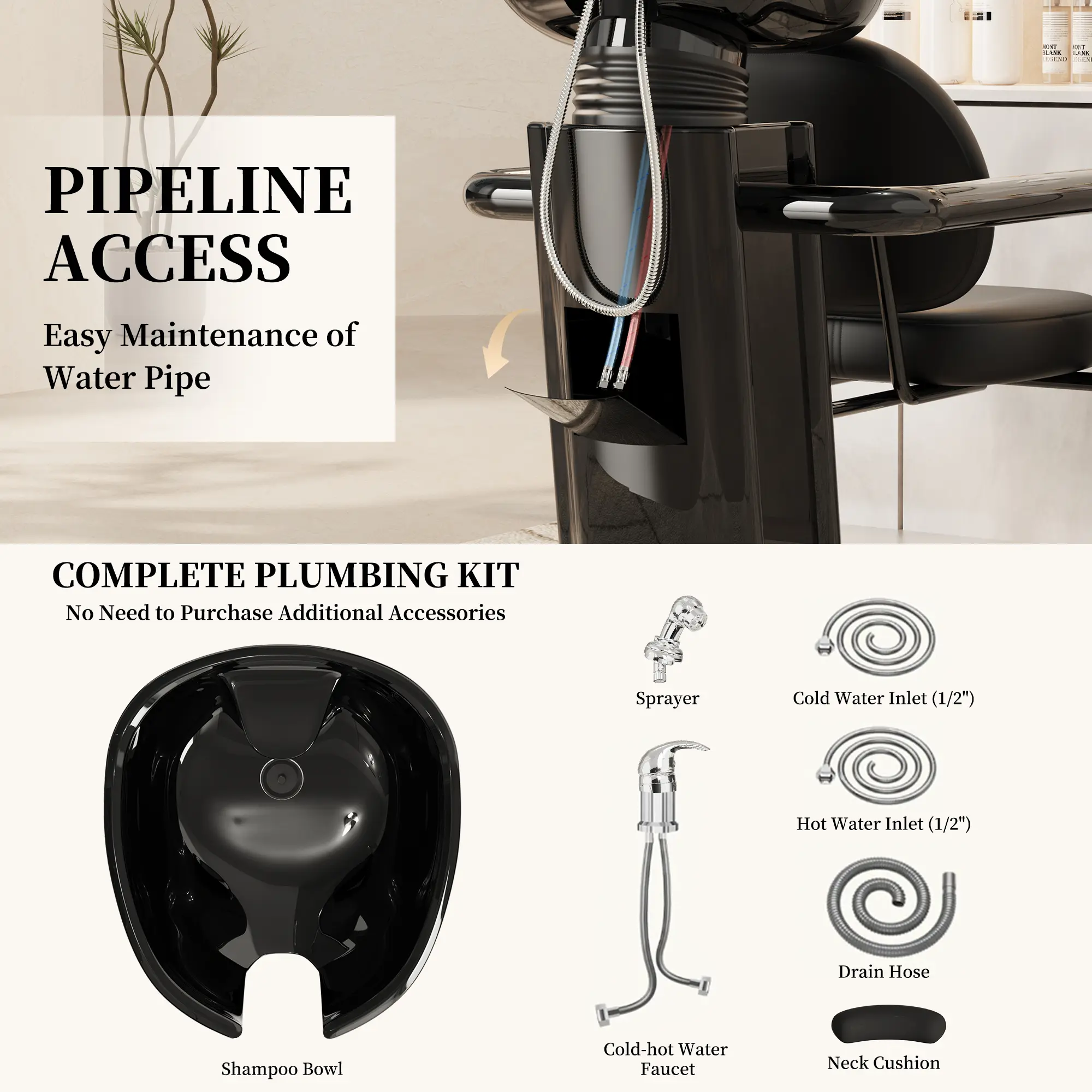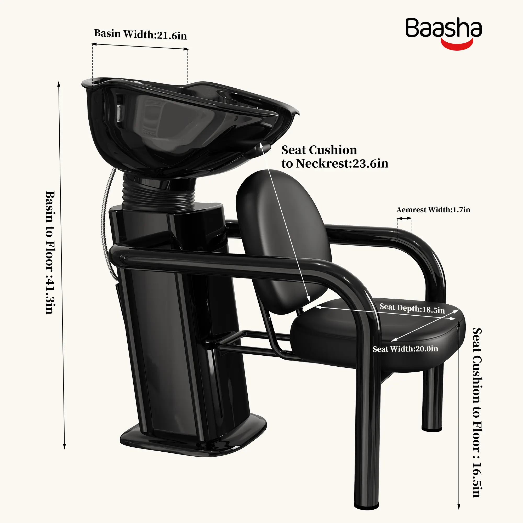 Baasha Professional Shampoo Chair and Bowl Set | Adjustable Hair Wash Station with Neckrest | Memory Foam Soft Cushion Head Spa Chair | All-In-One Accessories Included | Ergonomic & Modern Design Salon Equipment | Shipped in 2 Packages for Safety