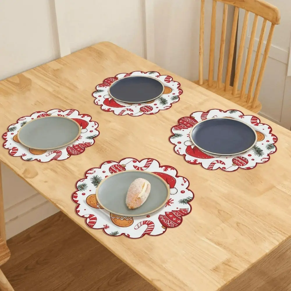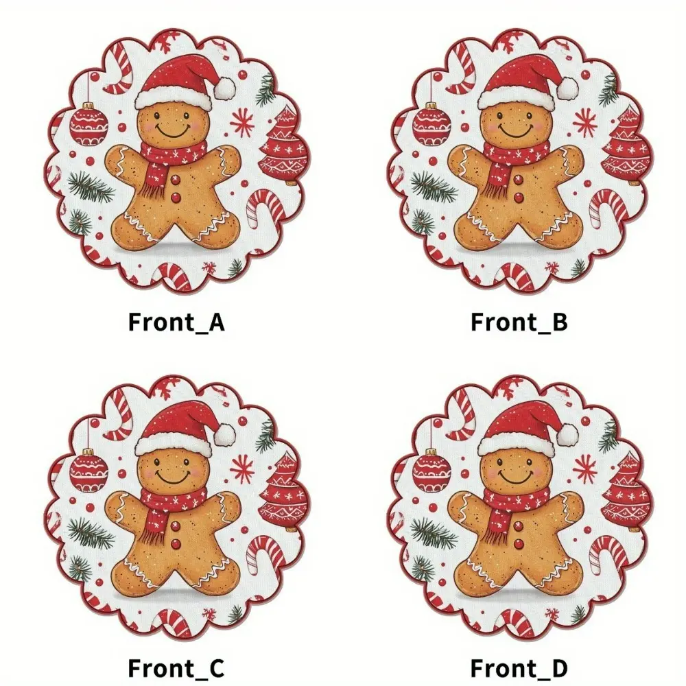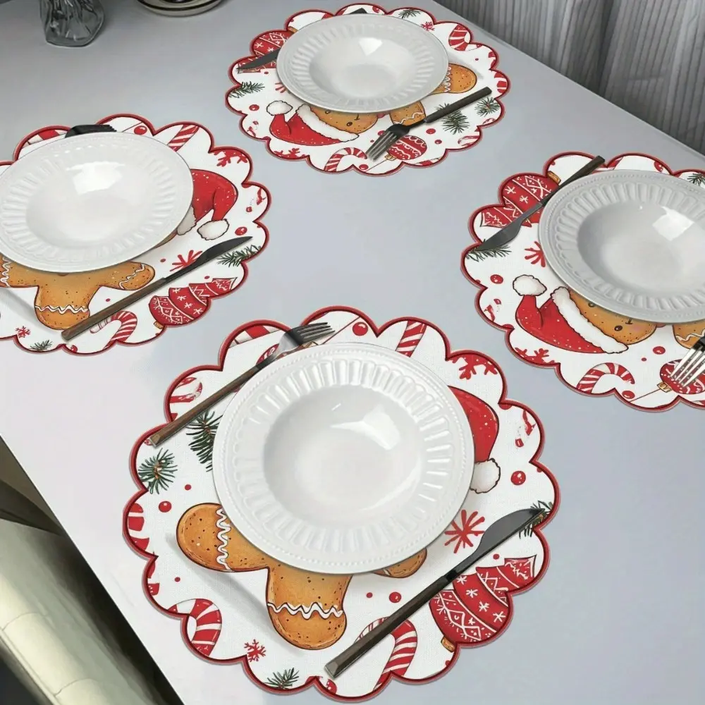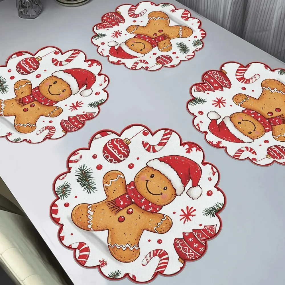 4 festive gingerbread round placemats - non-slip, heat-resistant, polyester placemats with festive design, suitable for restaurant and party decoration, 15.0 inches