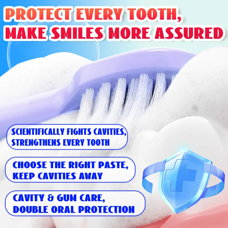 To address concerns about accidental ingestion, please control the amount of toothpaste used within appropriate limits: for children under 3 years old, use a rice-grain-sized amount; for children aged 3 to 6, use a soybean-sized amount. When brushing, press the toothpaste deep into the toothbrush bristles to prevent accidental ingestion; adults should supervise closely to ensure the child