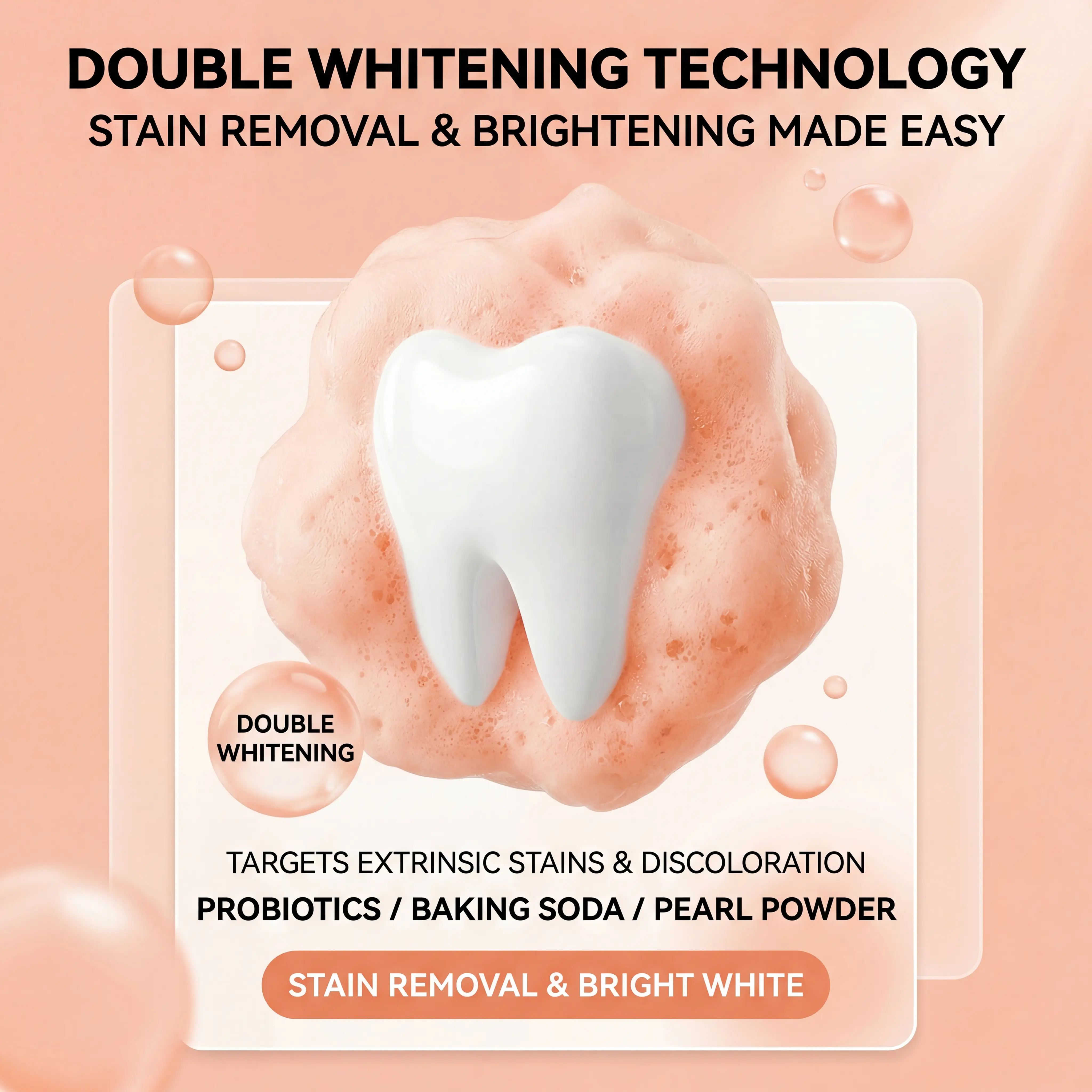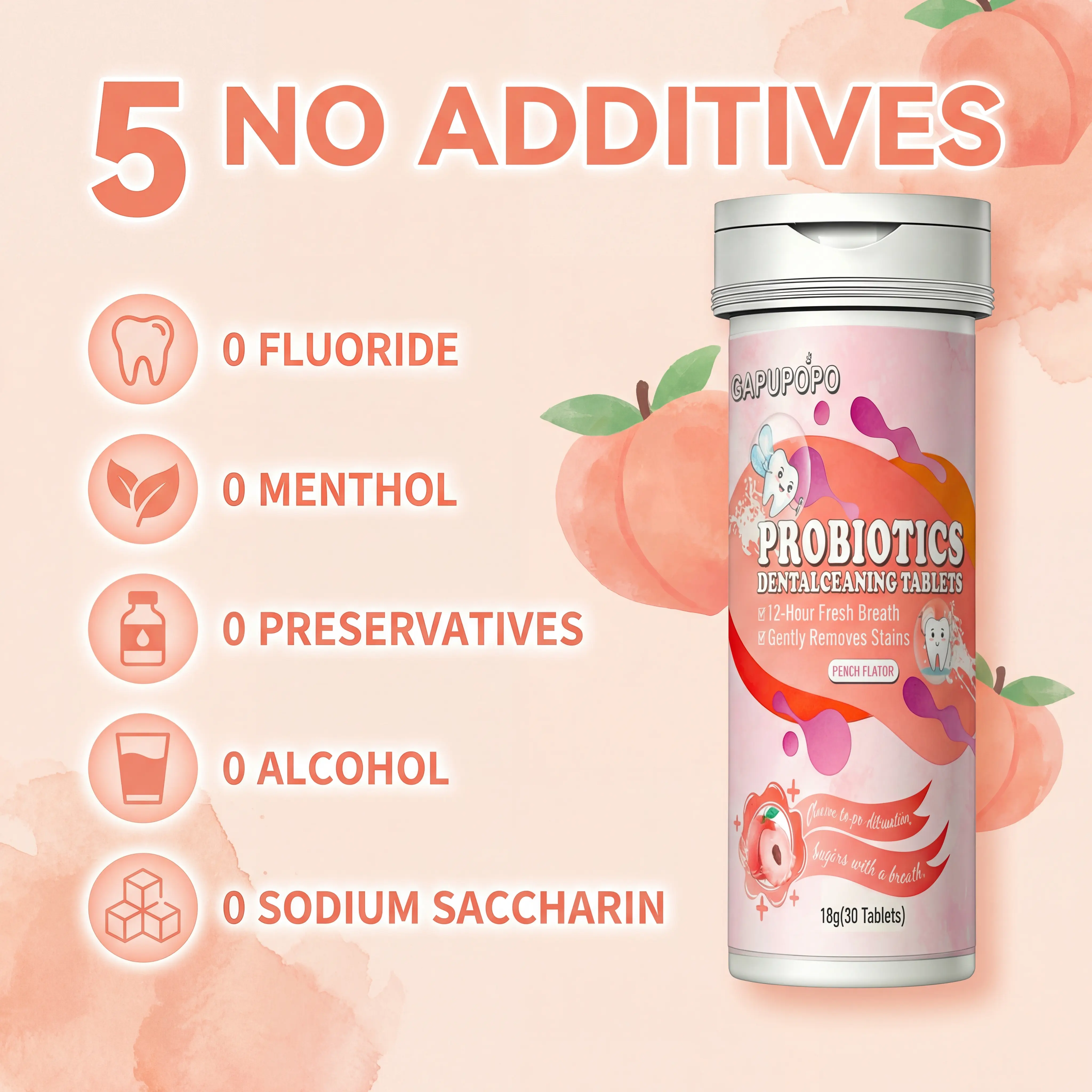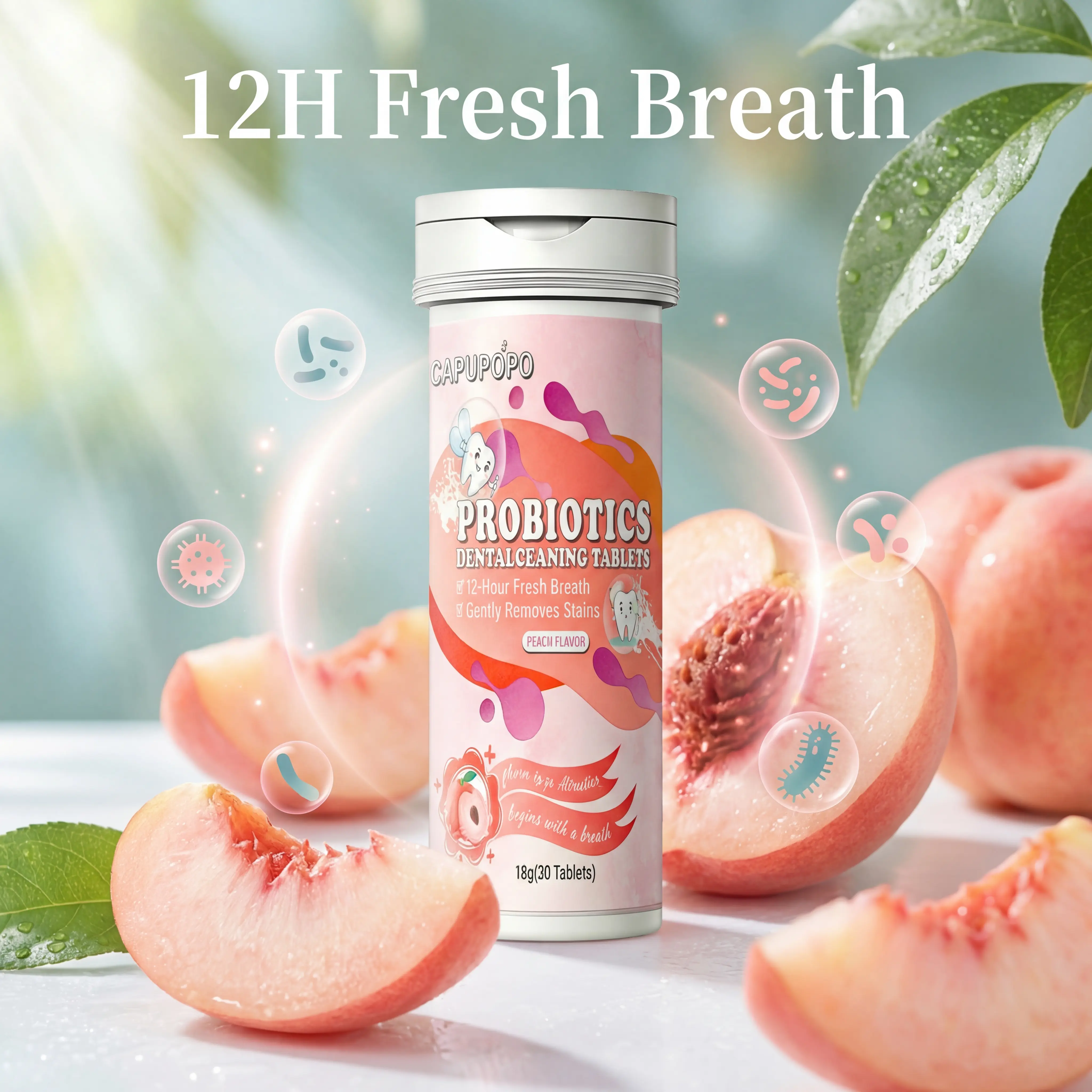 CAPUPOPO | Probiotic Solid Toothpaste,Nano Hydroxyapatite,Mouthwash ,with Pearl Powder for Brightening Teeth, Gentle Stain Removal, Long-Lasting Fresh Breath, Fluoride-Free Daily Oral Whitening for Adults, Eco-Friendly killer Anti Plaque Peach Foam Mint