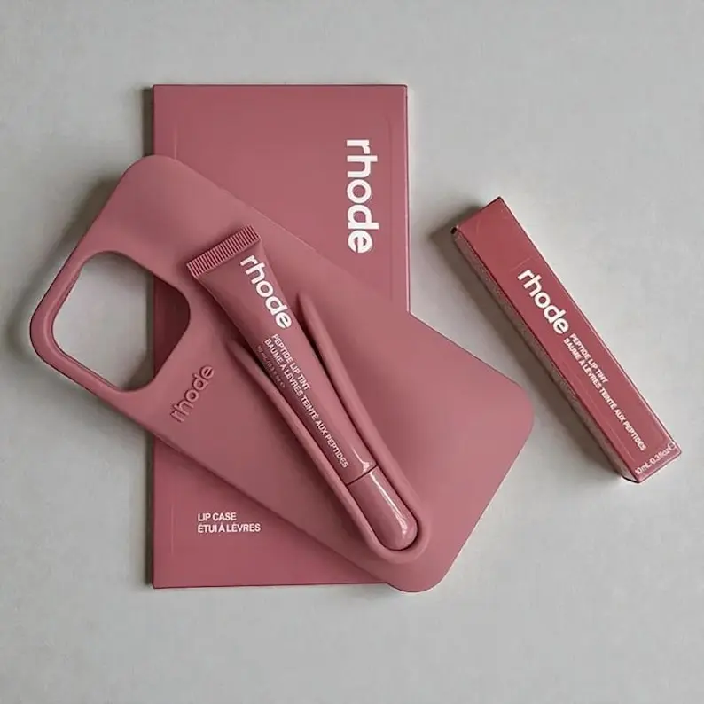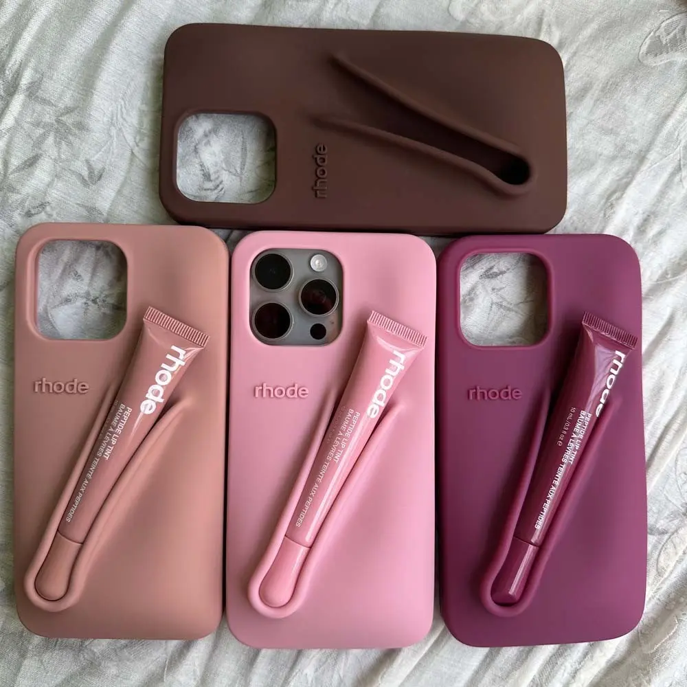 Rhode Lip Balm Holder Phone Case for iPhone Soft Silicone Hailey Bieber Style Minimalist Protective Cover for Makeup Lovers