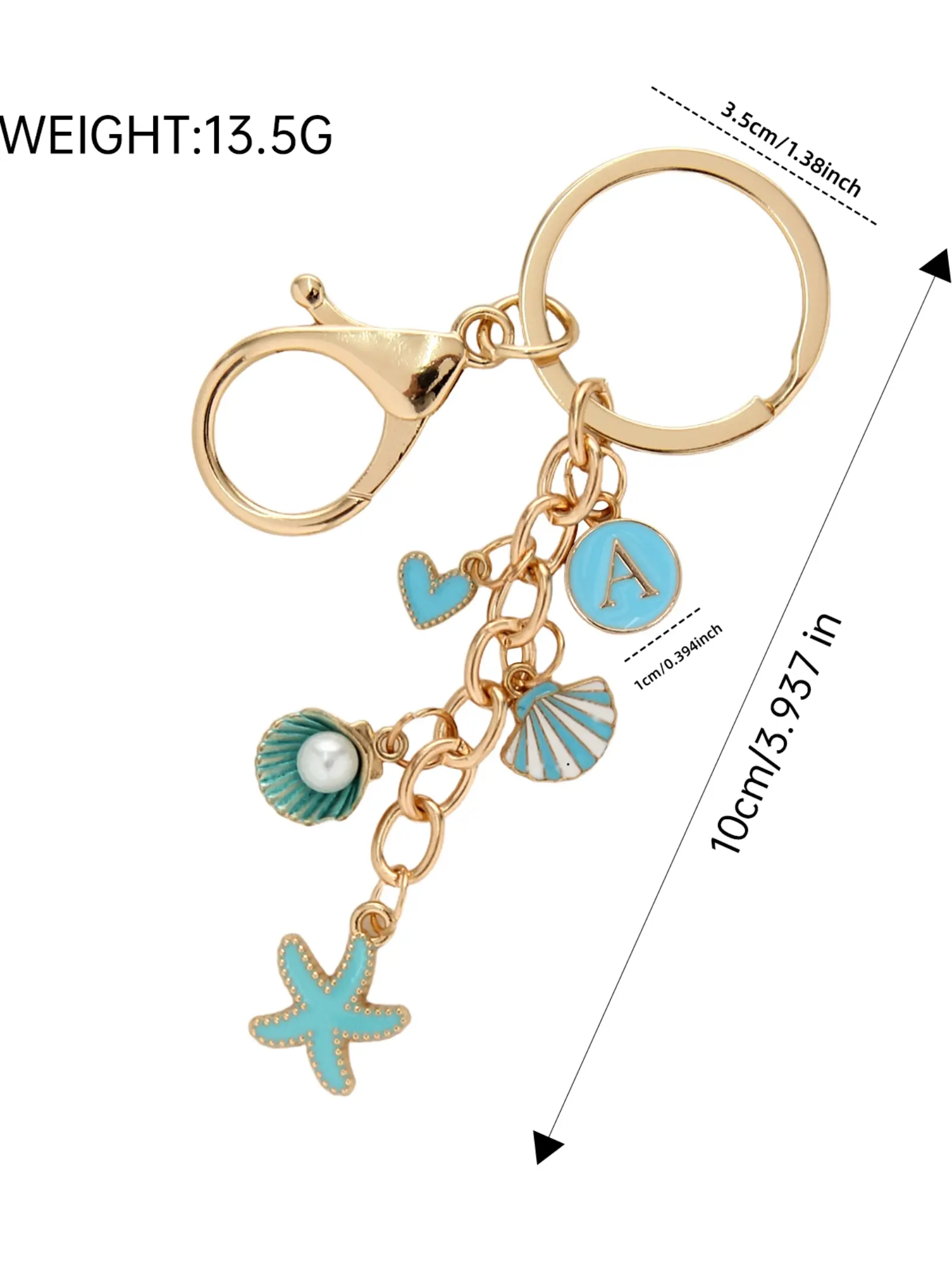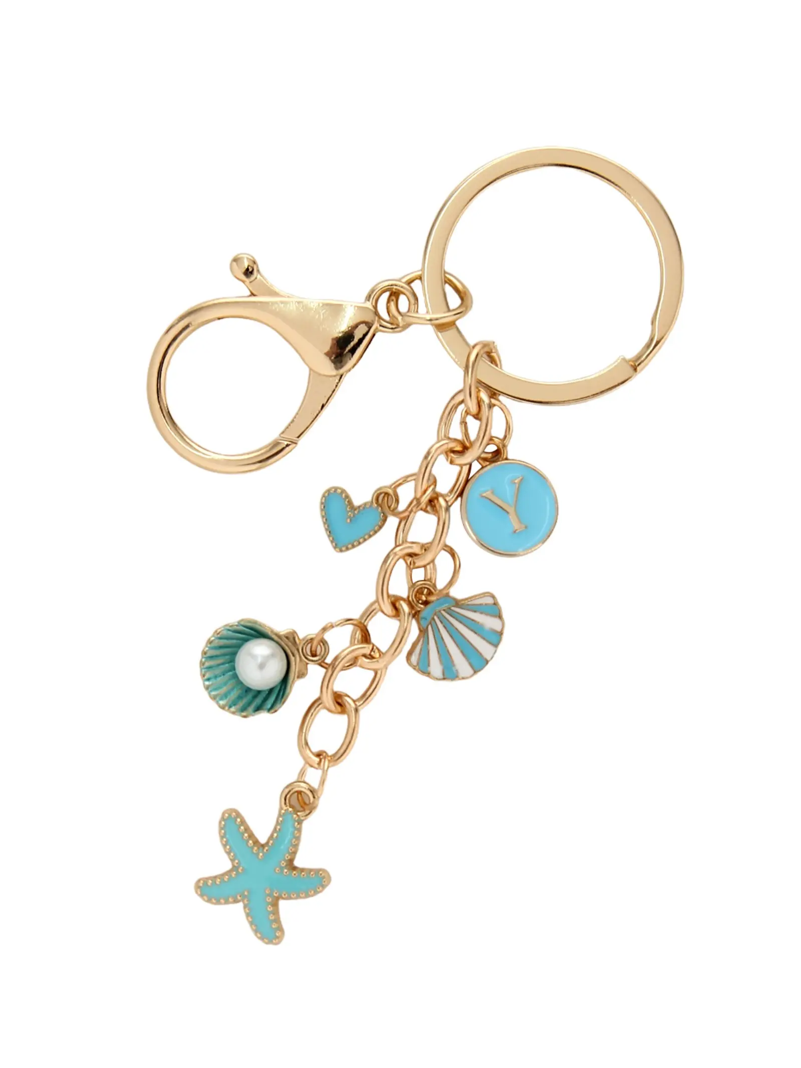 Aluminum Alloy Keychain with Starfish Shell Pearl Charm, 26 Letter Design, Ocean Theme, Handbag Accessory, Unique Gift Idea
