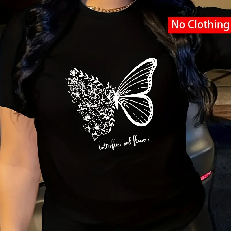 5. White Vinyl Butterfly & Flowers Iron-On Transfer Patch, Heat-Activated Washable Decal Sticker for T-Shirts, Jeans, Backpacks, Clothing Repair & Craft Projects, Durable Floral Applique for Customization