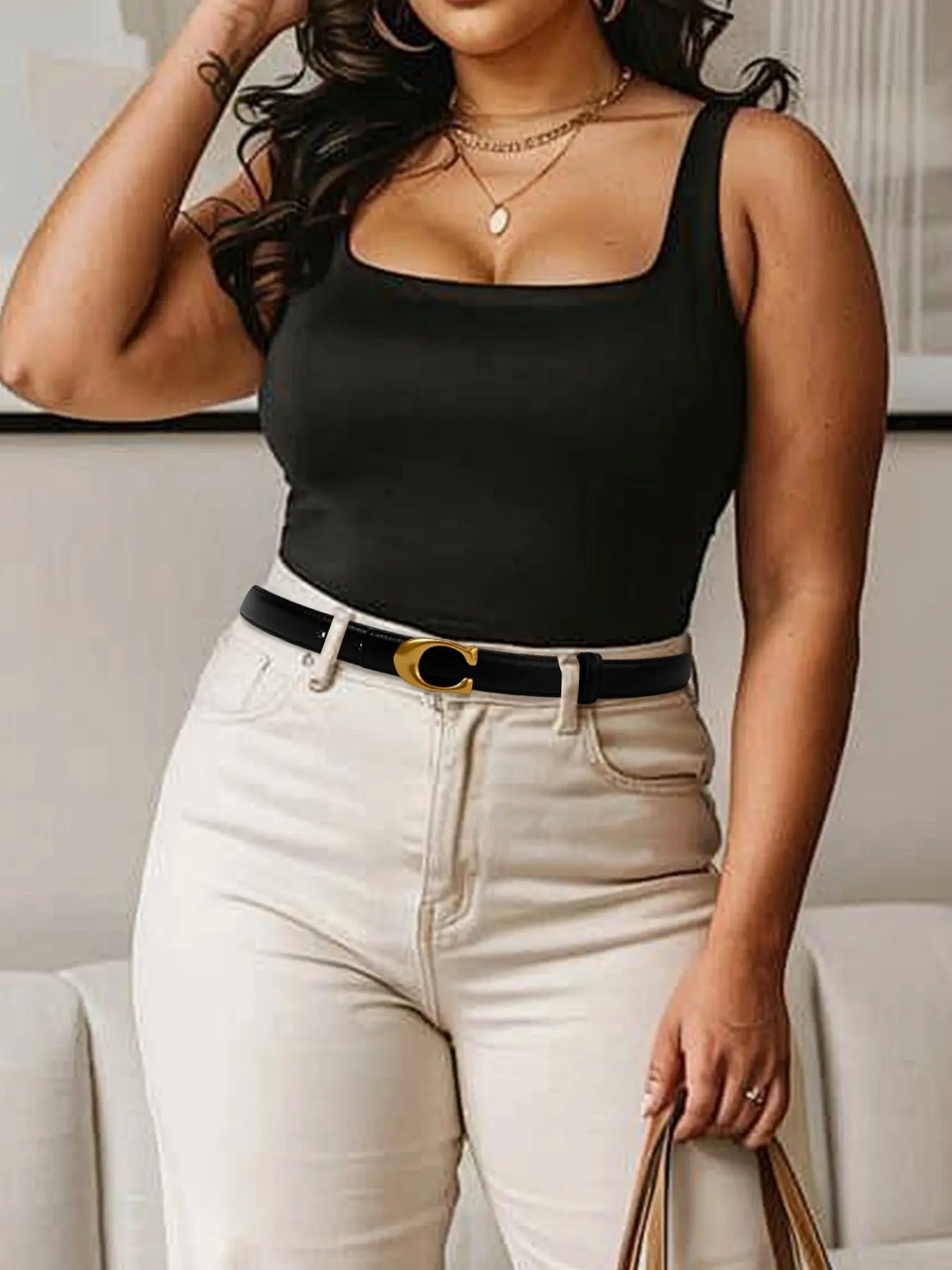 Women's C-Type Buckle Belt, Classic, Adjustable Waistband for Jeans and Formal Pants, Essential Wardrobe Item