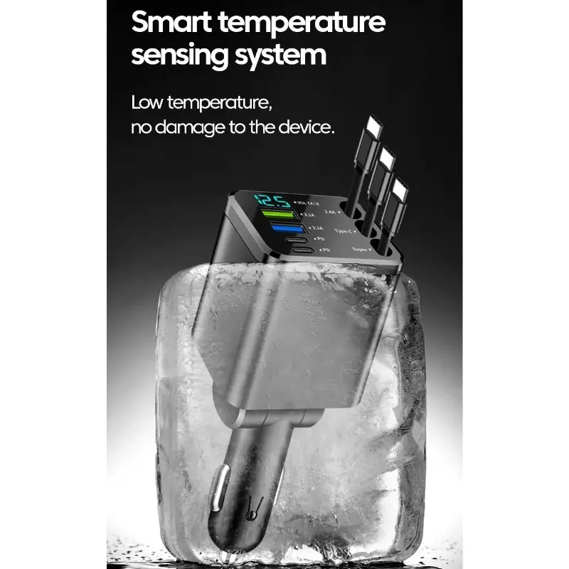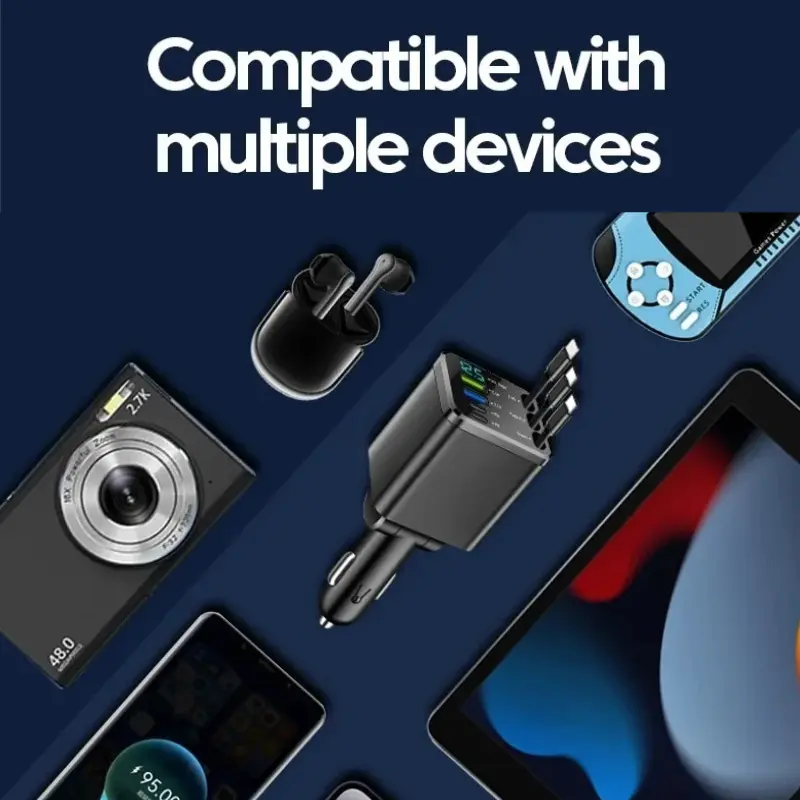 Retractable Car Charger 7 in 1 Fast Charging Car Charger Retractable Cable USB Type C Multi Ports Car Charger Adapter Compatible