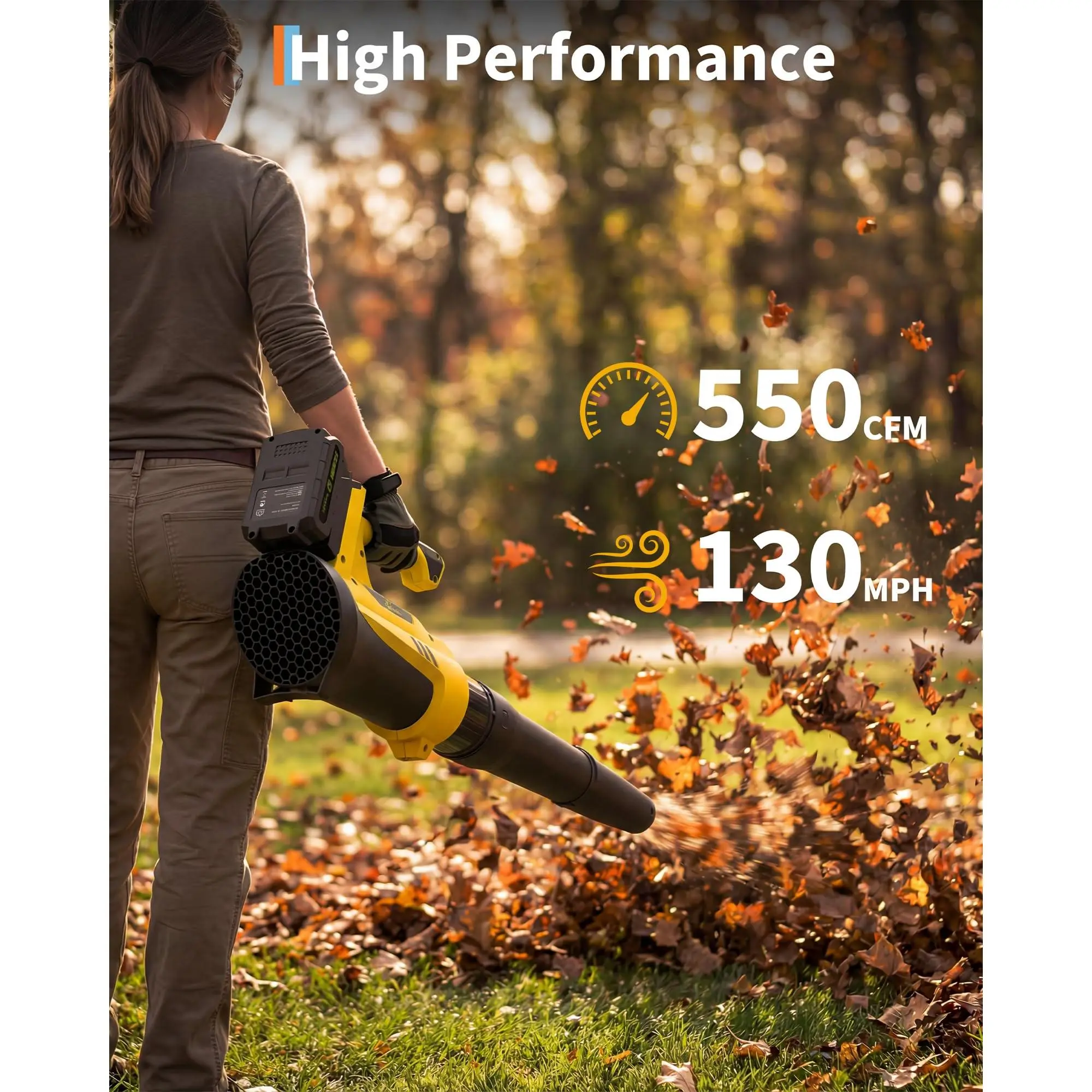·【Effortless Operation & Control】 Bush Trimmer Enjoy uninterrupted work with automatic line feed—no bumping or manual adjustments needed. The trimmer head automatically advances the line, letting you focus on your yard. With 6 variable speed settings, the blower delivers up to 550 CFM and 130 MPH to handle light debris or heavy leaves with ease.