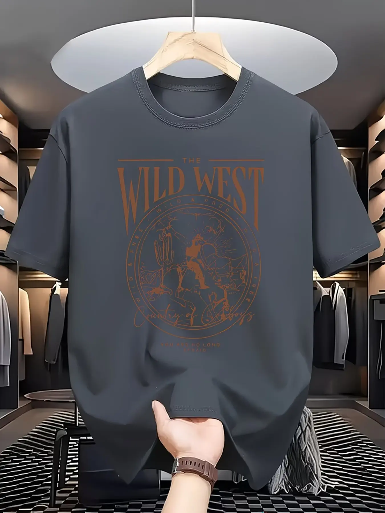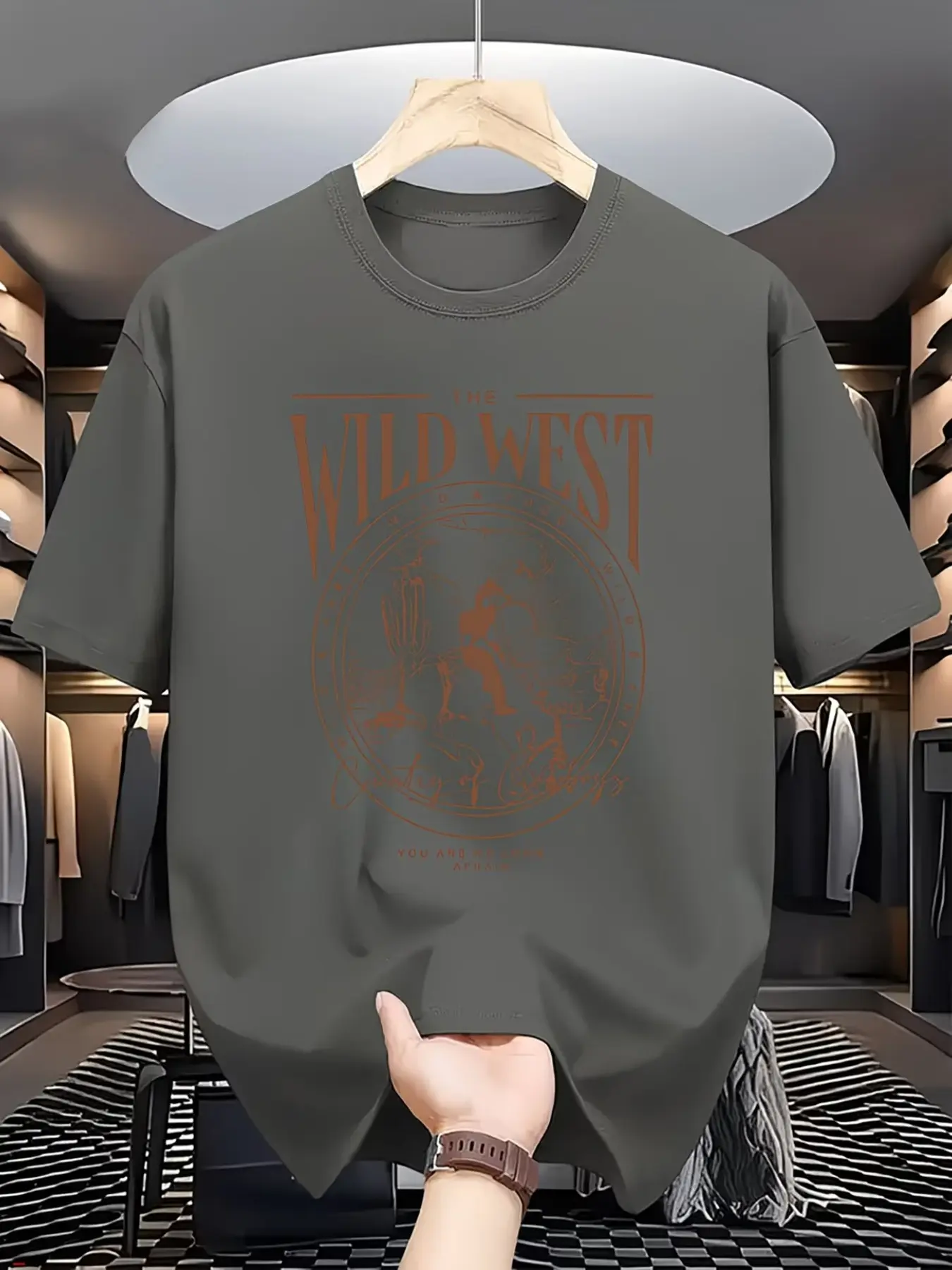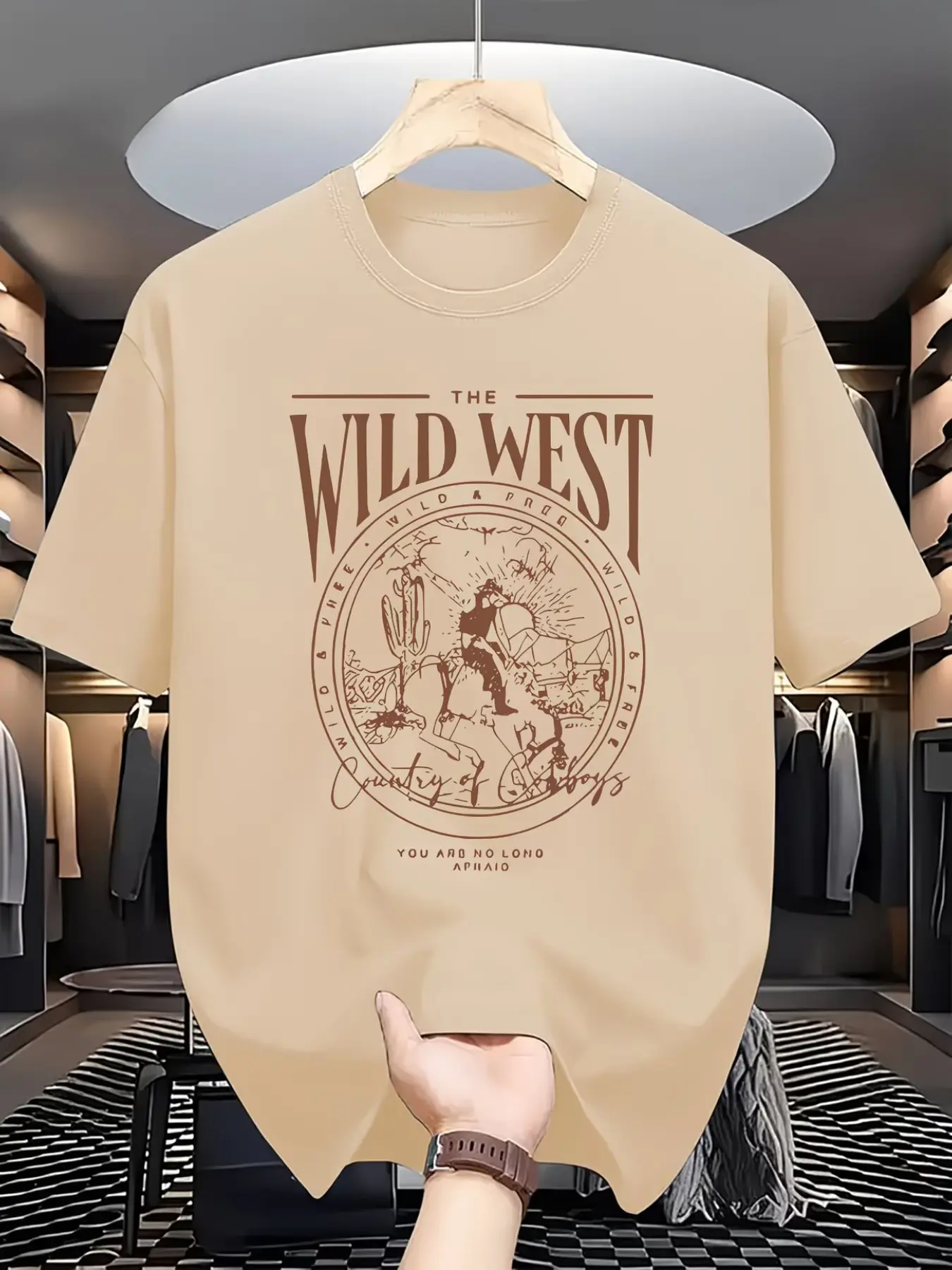 Men's Summer Casual Western Cowboy Retro Pattern High-Quality Fitted Fashion T-Shirt, Perfect for Summer, Essential for All Seasons