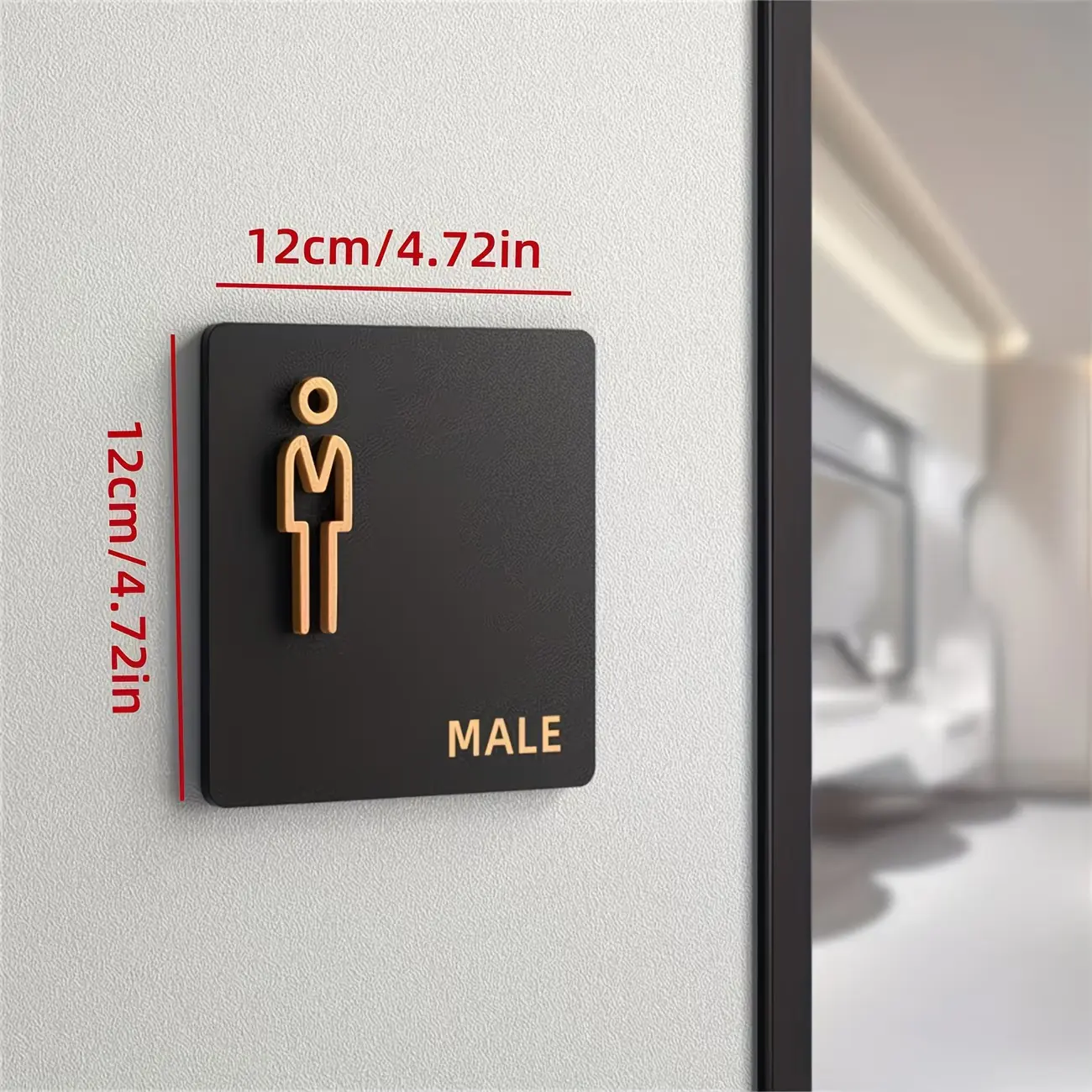 Acrylic Plastic Bathroom Sign, Adhesive Backed, Unisex Restroom Door Plate, 3D Icon, Stylish Decorative Design, 4.72*4.72in