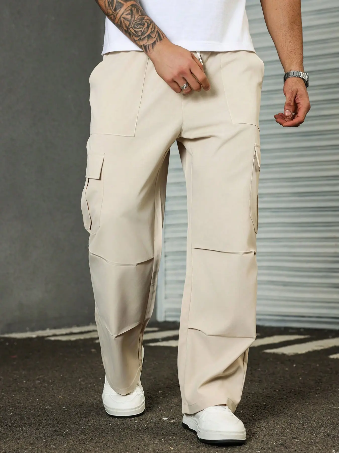 Men's Plus Size Lightweight Work Pants, Elastic Waist Drawstring Zipper Pockets, Comfortable Breathable, Ideal for Outdoor Casual Wear