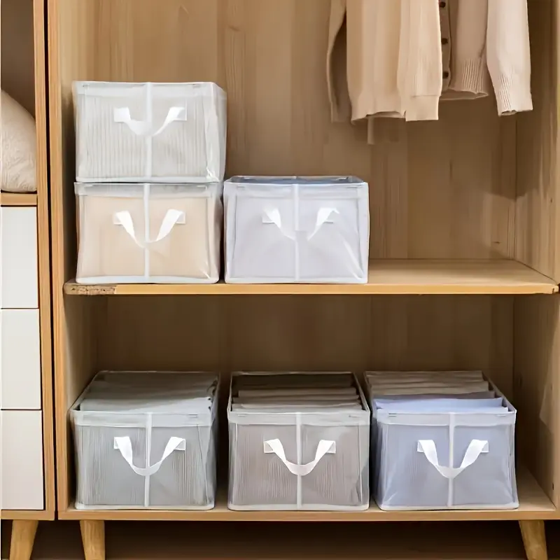 Made with a reinforced steel frame and high-quality, tear-resistant mesh fabric, these bins hold their shape even when fully loaded. The thick, reinforced handles make carrying heavy loads (like stacked sweaters or bedding) a breeze, no slipping or breaking.