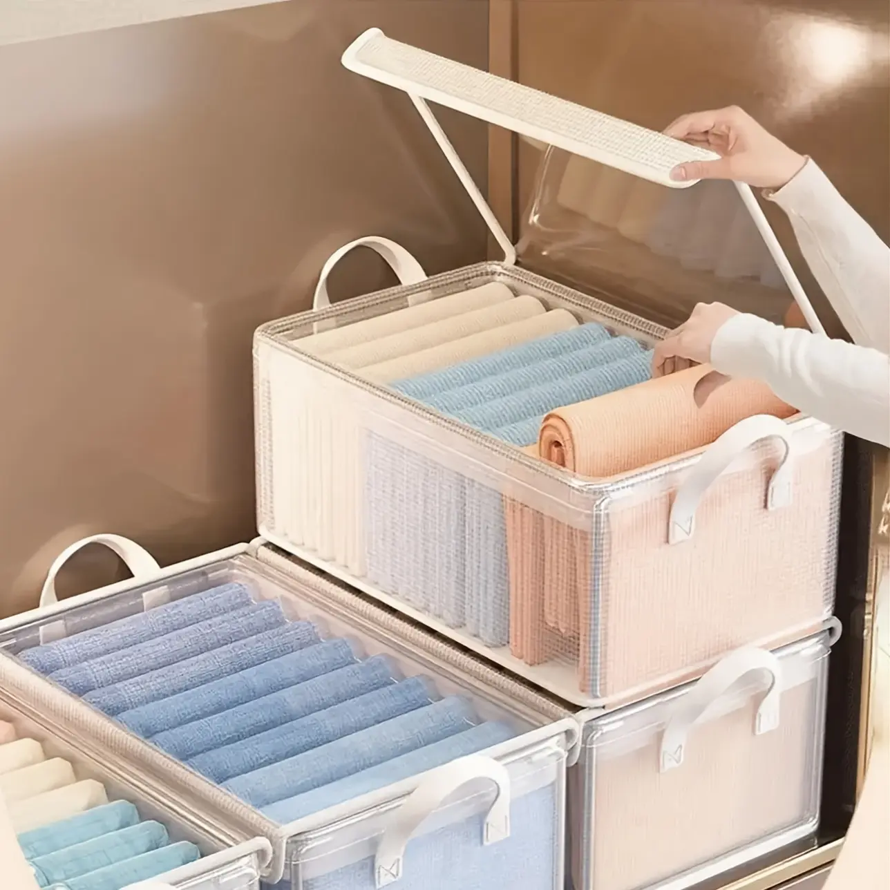 No more guessing what’s inside! The full-view clear mesh/vinyl window lets you instantly see your clothes, towels, blankets, or accessories—no more rummaging through multiple bins to find that one sweater.