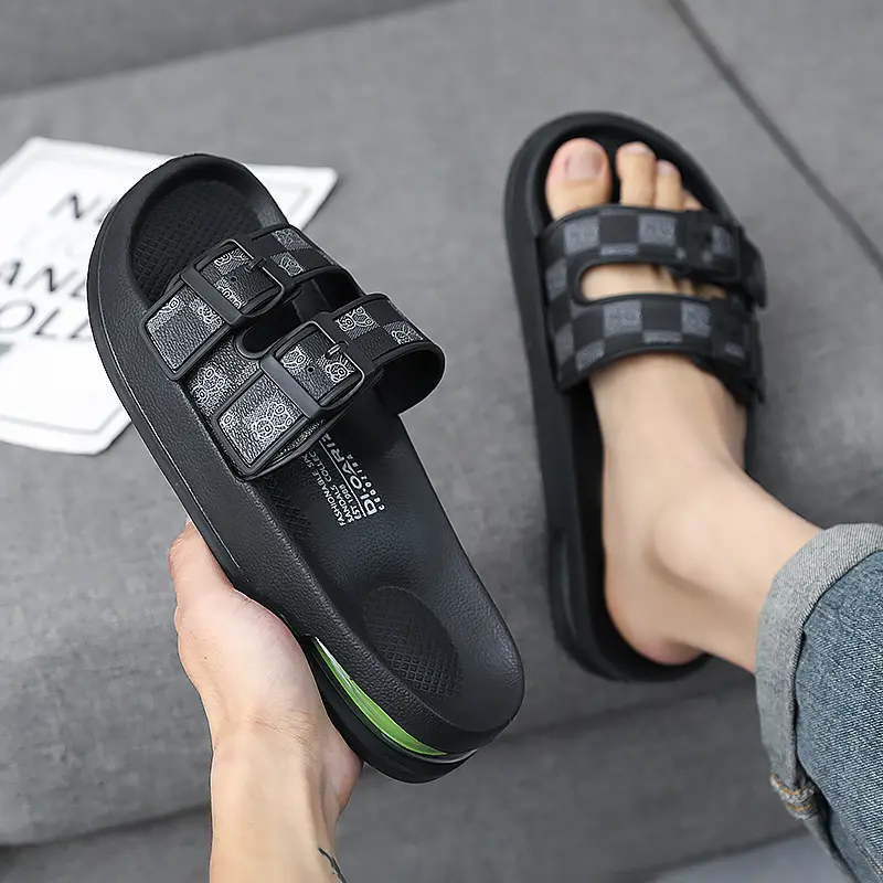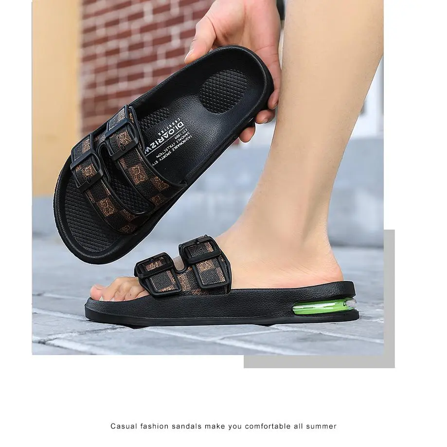 Fashion Slippers for Men 2026 Summer New Design Slides Luxury Leather Slipper Casual Beach Shoes with Air Cushion