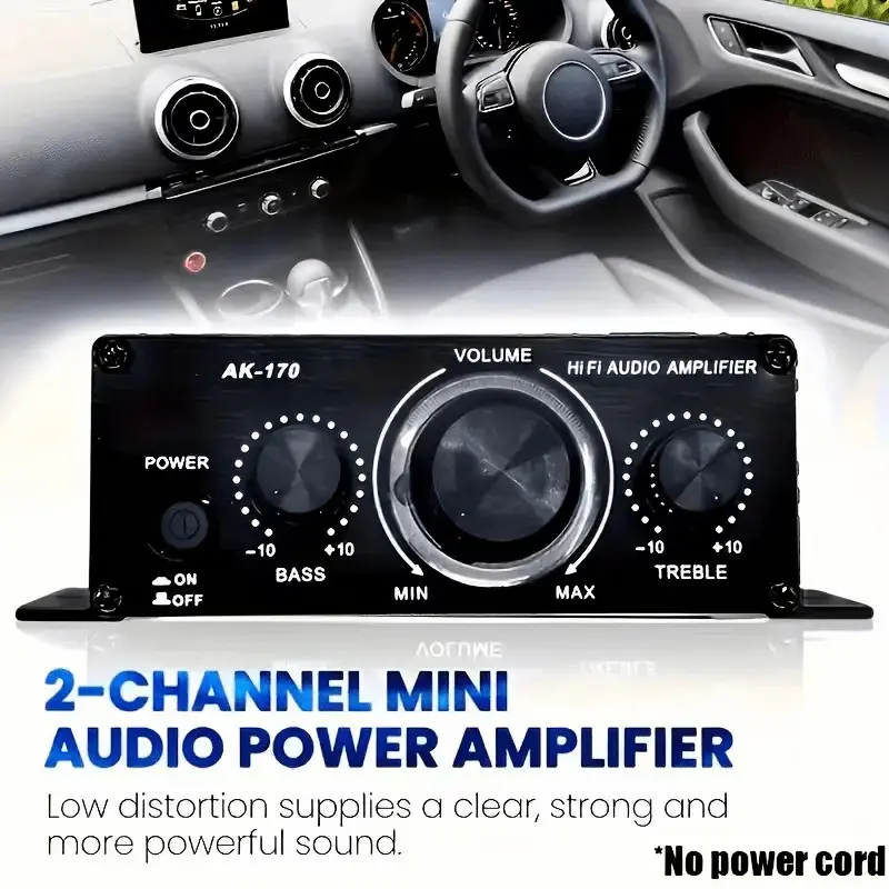 This amplifier is a must-have for anyone looking to improve their audio setup. Whether you're in a car, at home, or in a garage, this device delivers clear sound. The bass and treble controls ensure you can tailor the audio to your liking. Enjoy your music with enhanced clarity and depth.