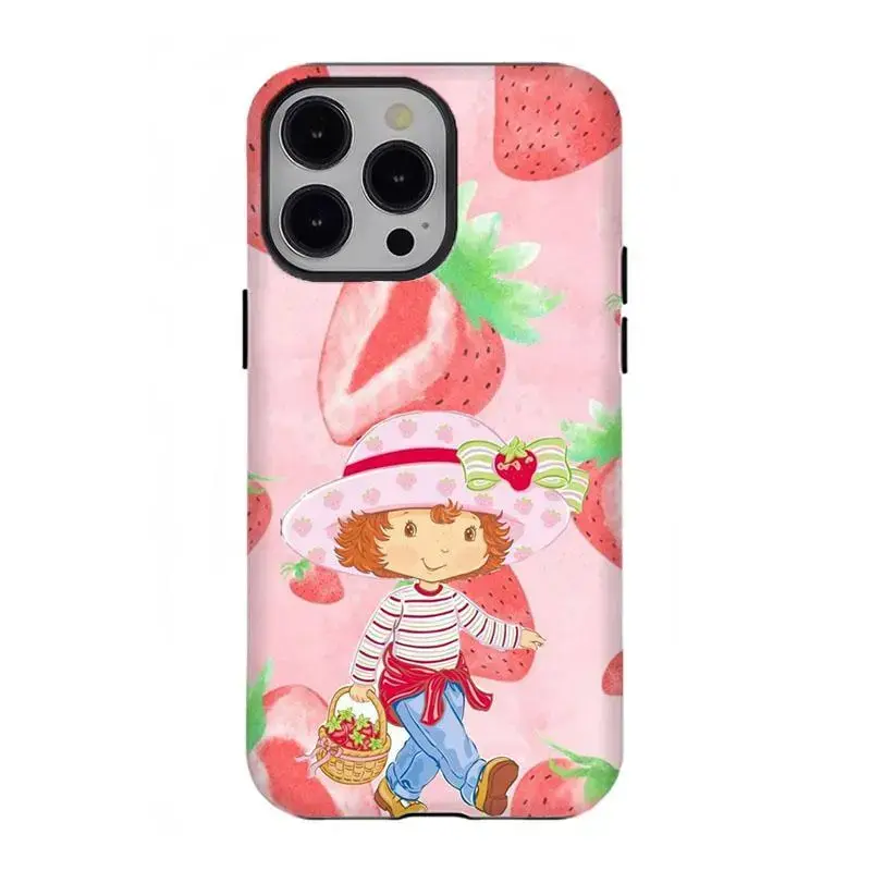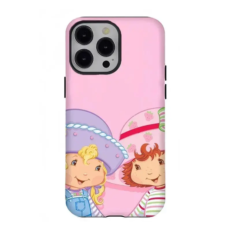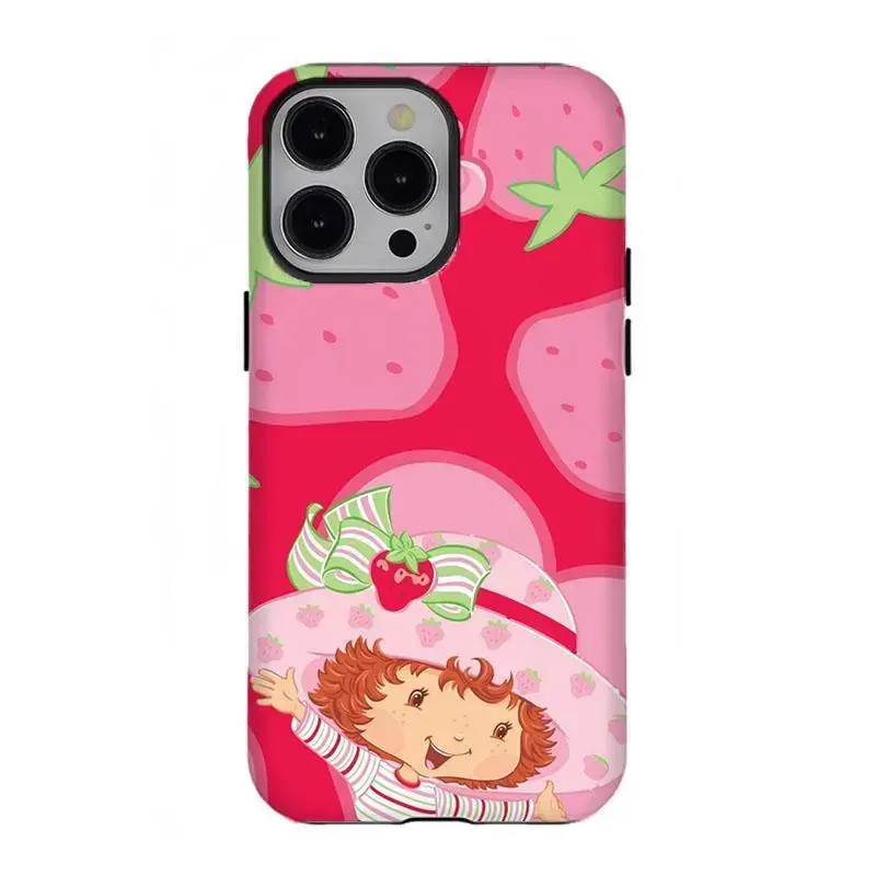Retro Cartoon S-Strawberry Short.cake Phone Case Vibrant Pink Strawberry Pattern Shockproof Cover Compatible for iPhone 17 Promax 16 15 14 13 12 11
