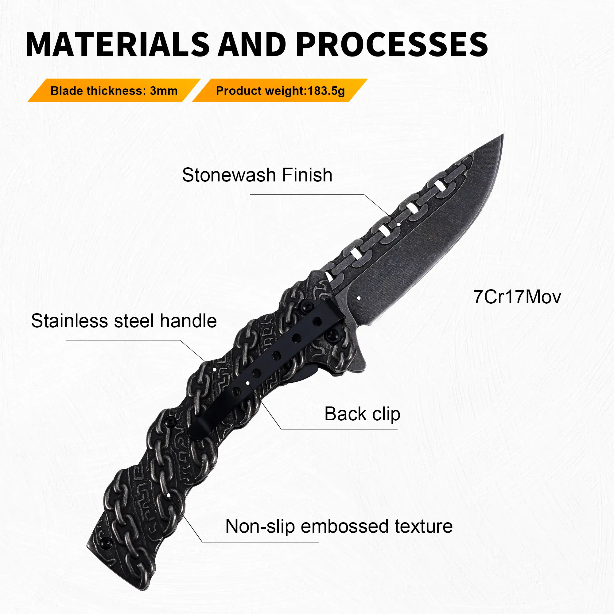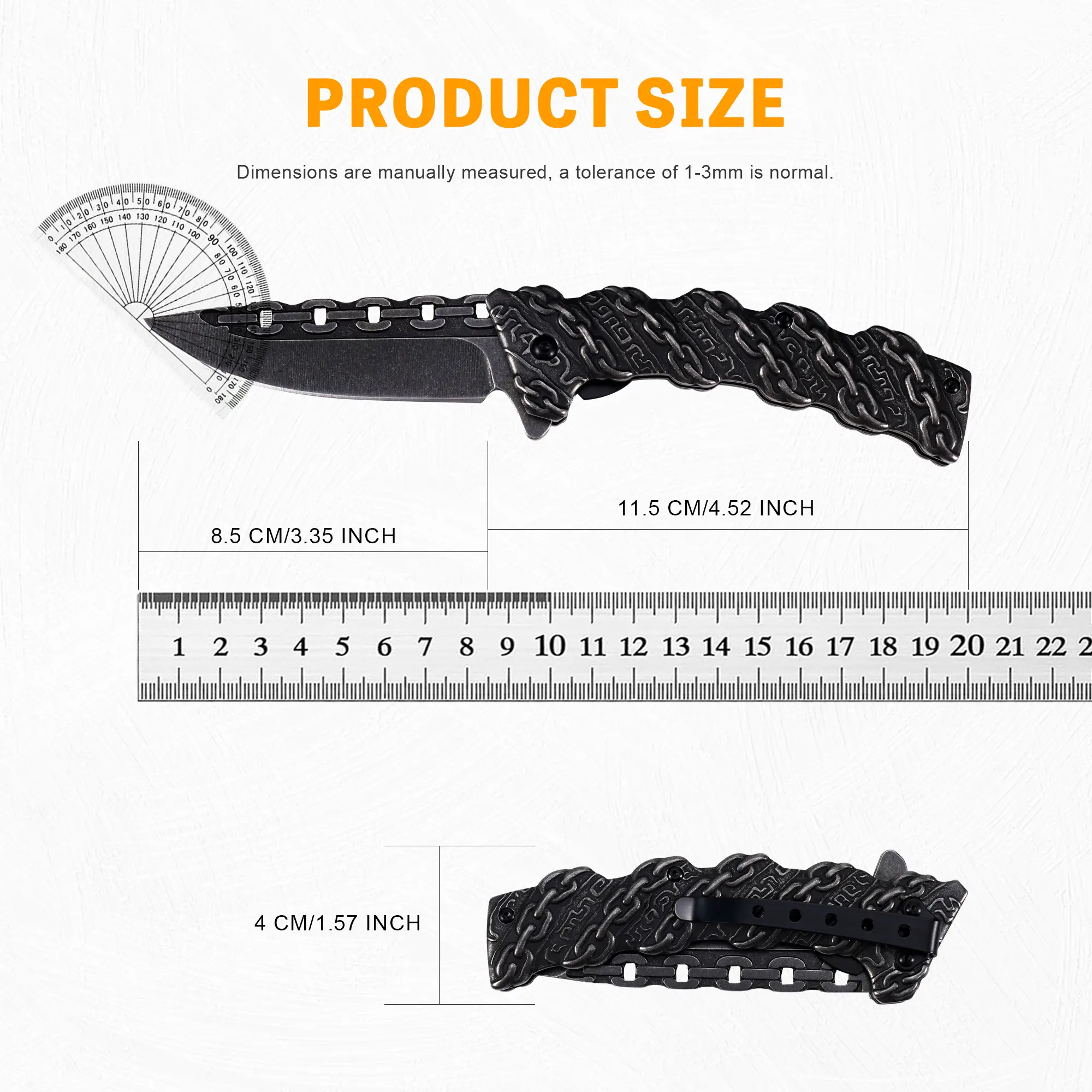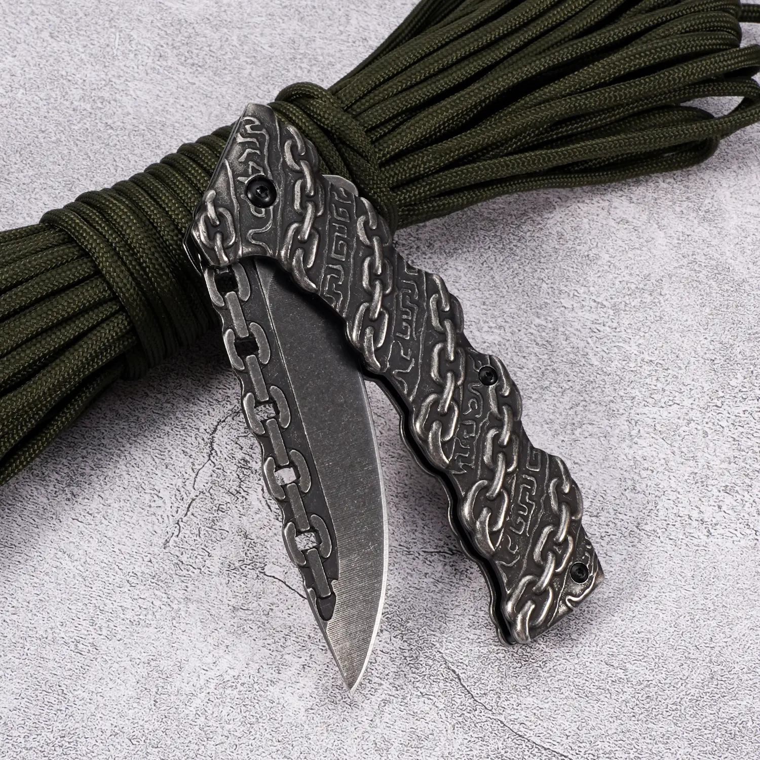 Portable EDC multifunctional lock chain tactical outdoor folding knife, all-steel construction; convenient pocket/belt clip, suitable for everyday carry, hiking, camping; outdoor cutting tool designed specifically for climbing and fishing.