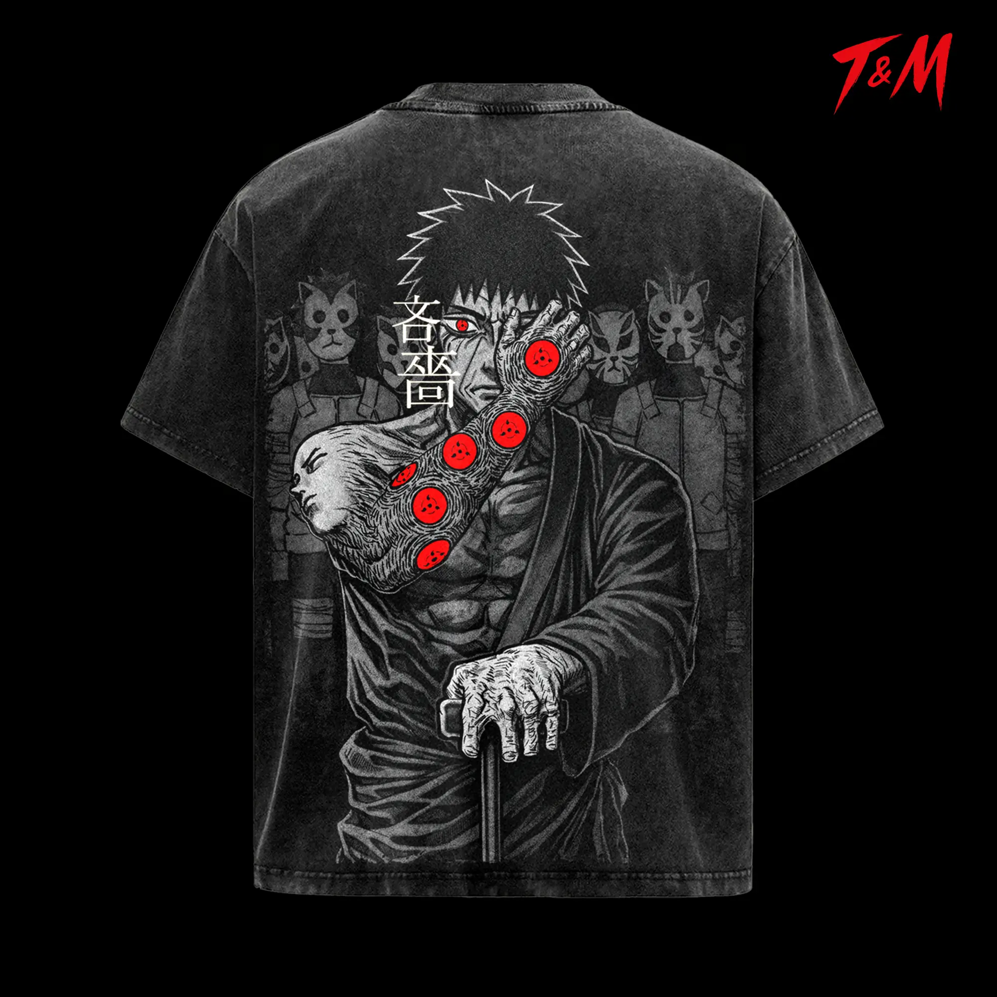 Danzo Anbu - Naruto Vintage Graphic Tee, Heavyweight Acid Wash Anime Shirt, Oversized Fit Streetwear top, Japanese Manga Aesthetic T-Shirt for Men and Women