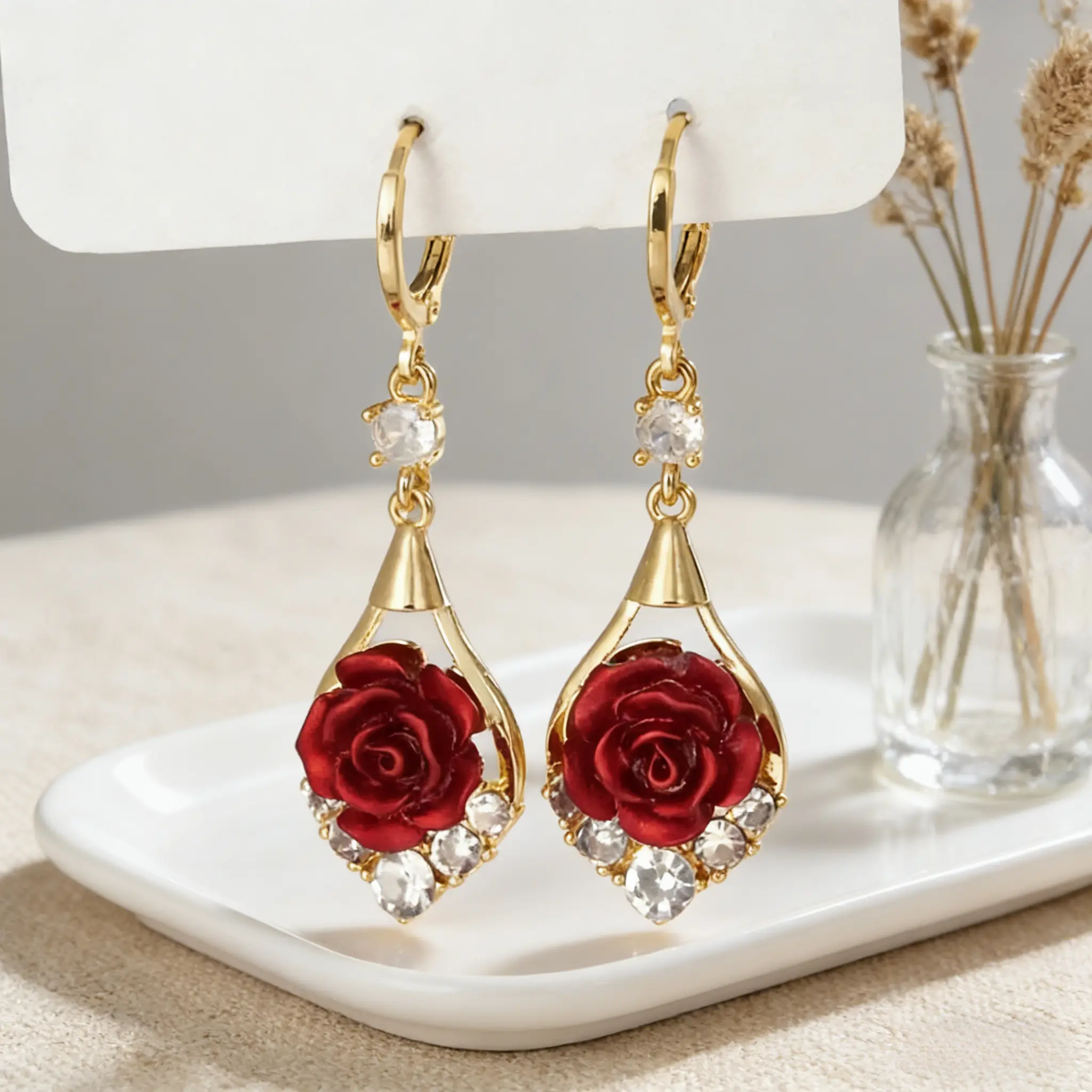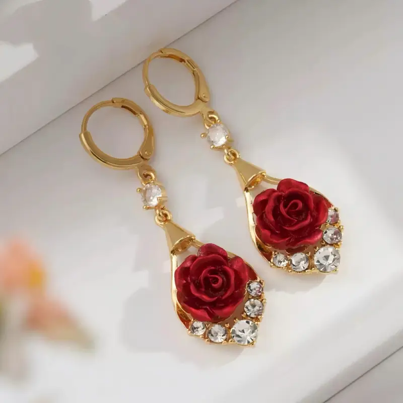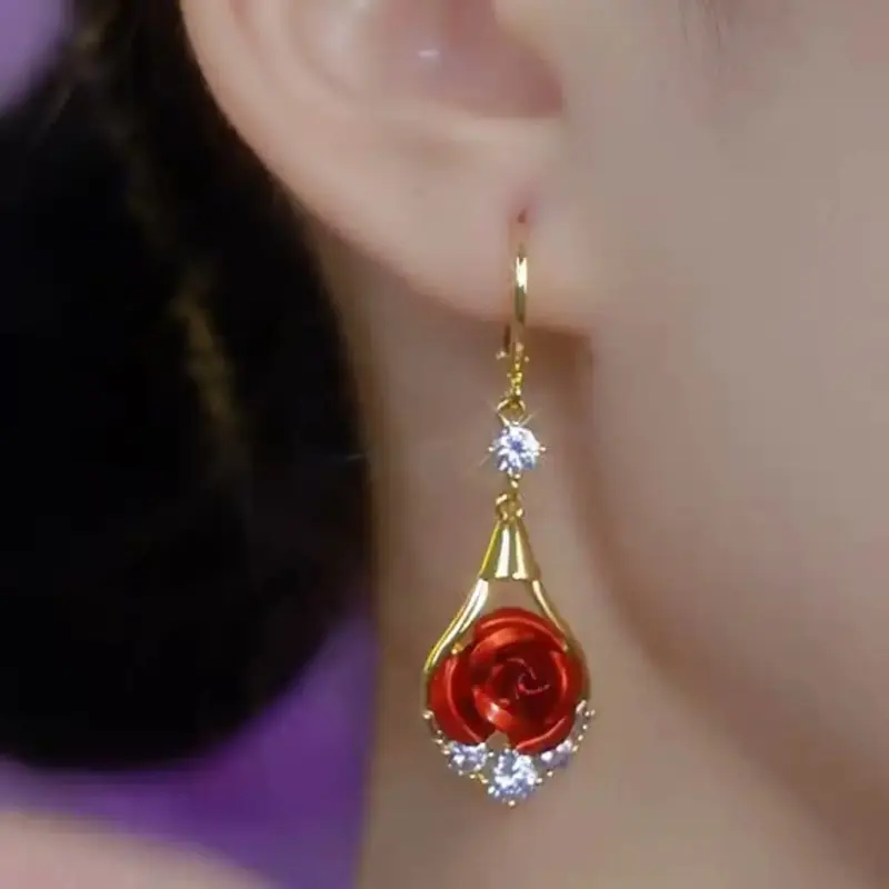 Rose Drop Earrings 14K Gold Plated Sparkling Crystal Tassel Design, Chic Elegant Fashion Jewelry Water Drop Earrings for Women 2025 DZEH4322