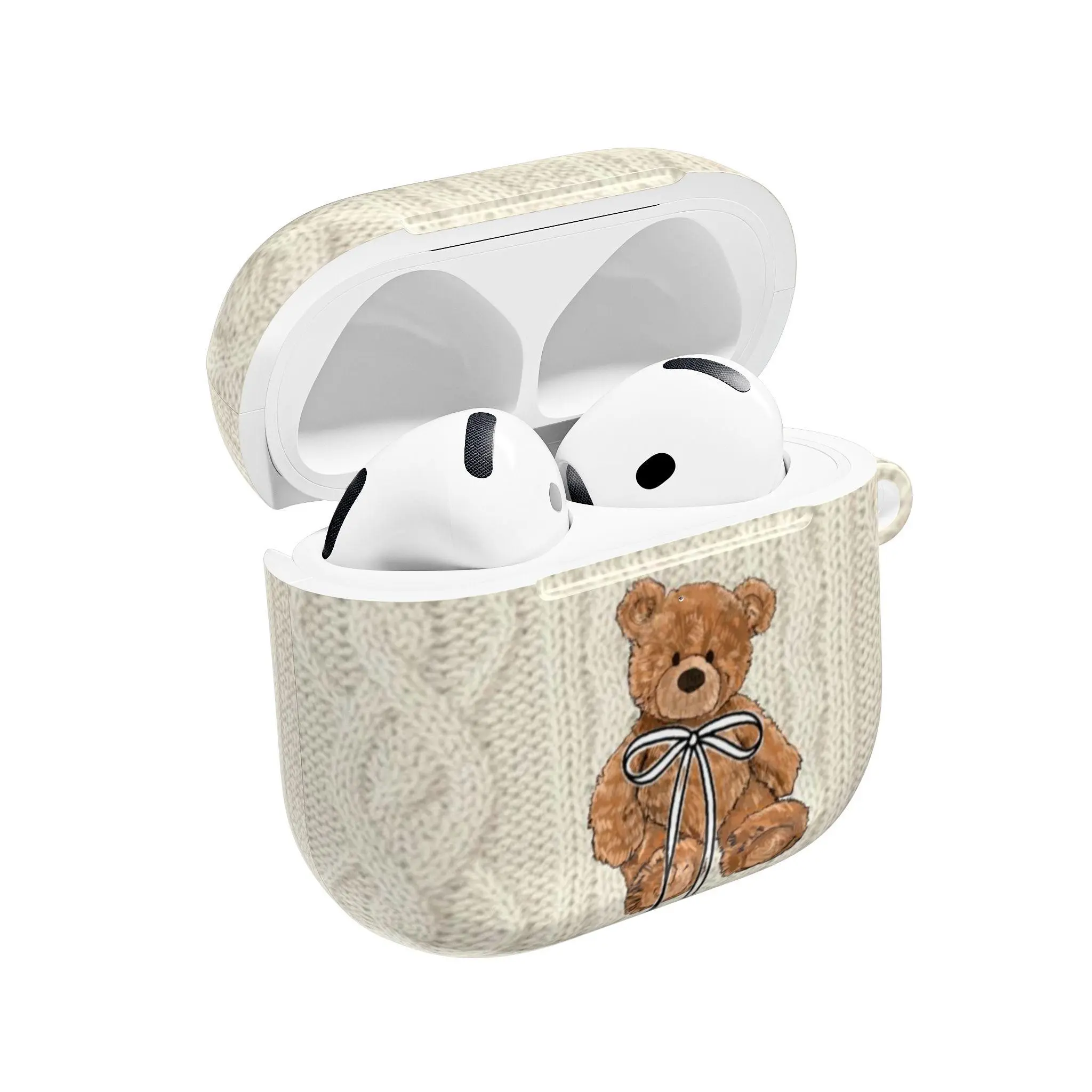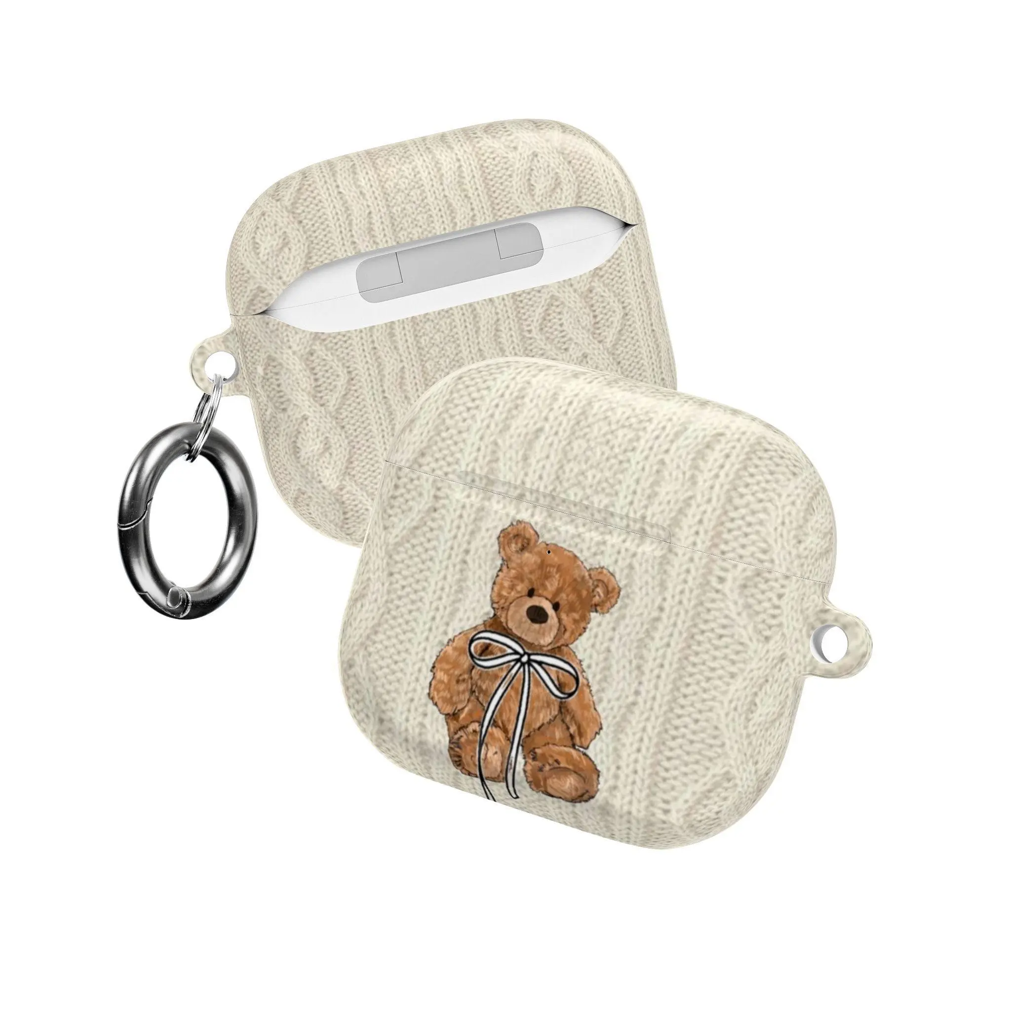Cute Teddy Bear AirPods Case, Cozy Beige Sweater Style Protective Cover for AirPods Gen 1, 2, 3, 4, AirPods Pro 1, 2, 3 Shockproof Soft Knitted Design, Adorable Gift for Women Girls