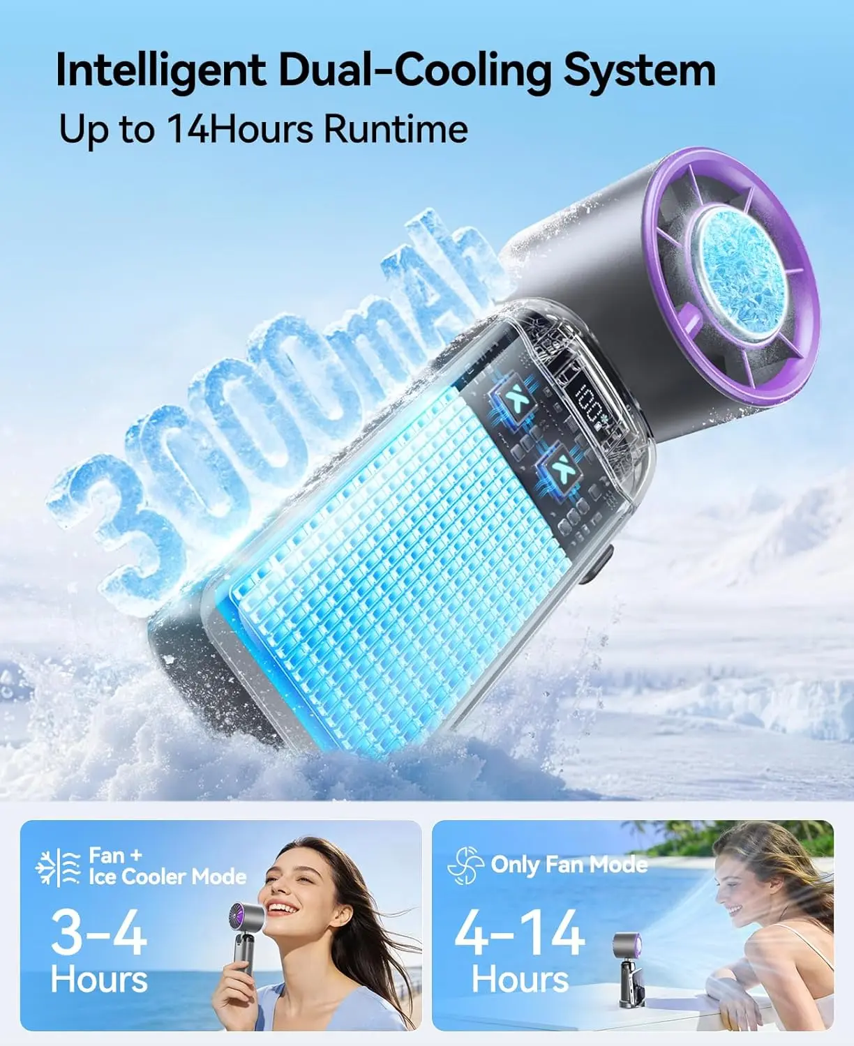 ·Long Battery Life: Up to 14 hours of use on a single charge (3–4 hours in turbo ice mode) for all-day outdoor and commute cooling.