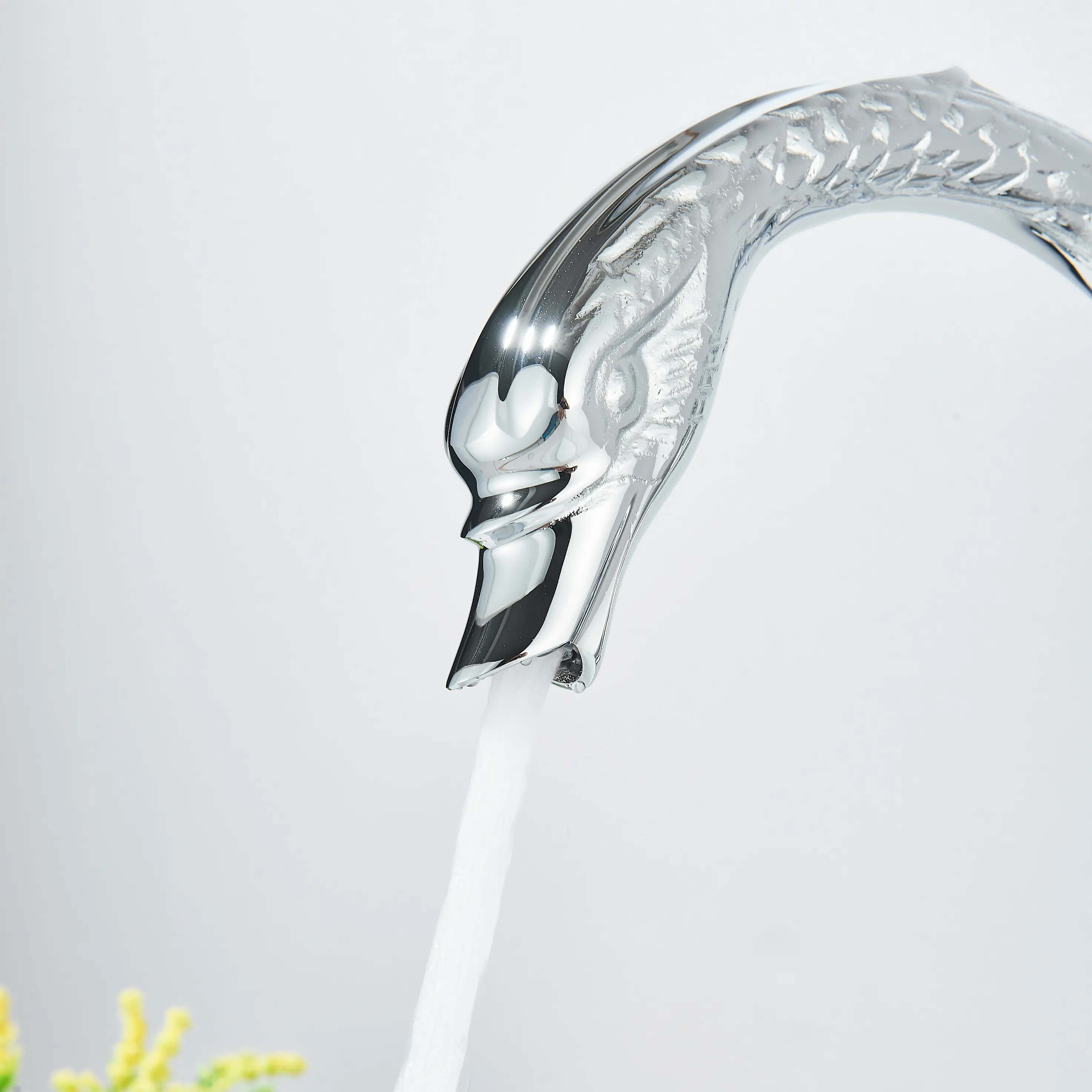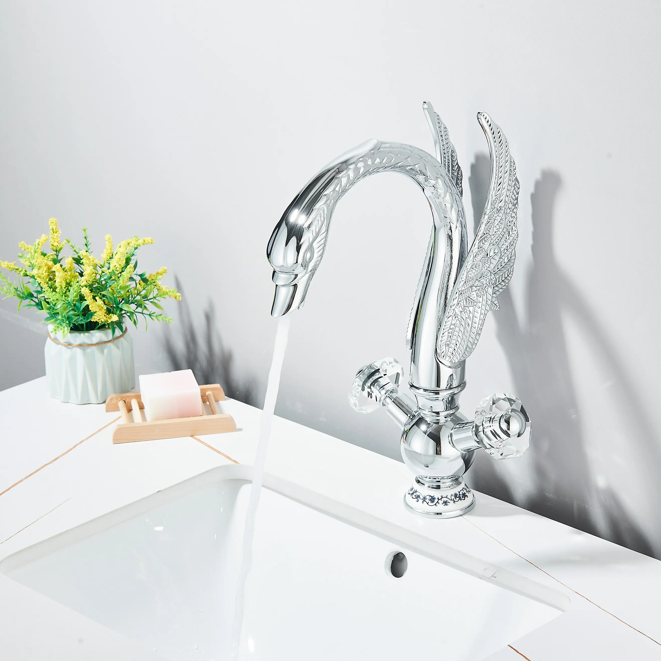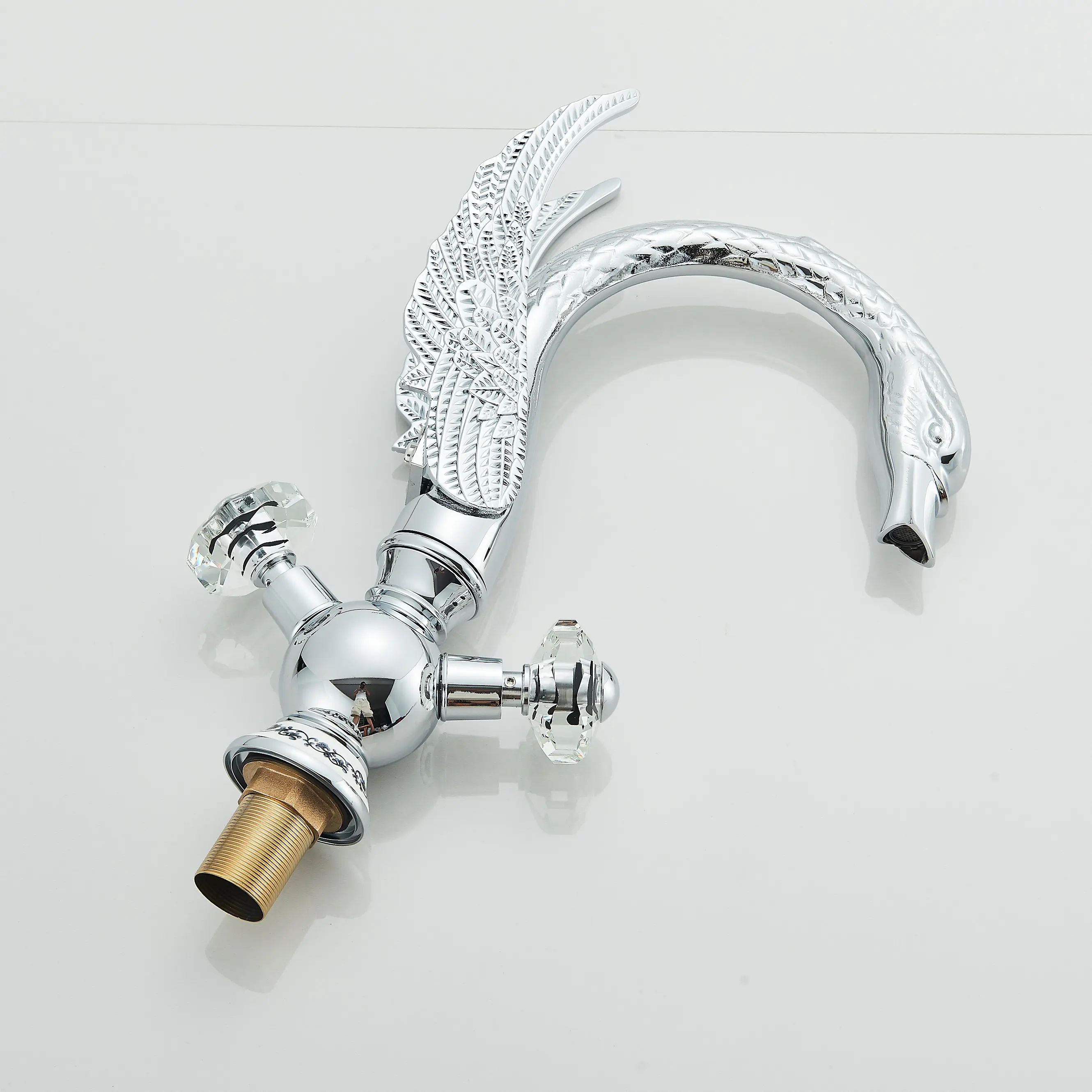 Faucet Modern Brass Bathroom Faucet Handle Deck Mount Vanity Sink tap with Hot Cold Water Faucet Swan Shape Bathroom Faucet Chrome