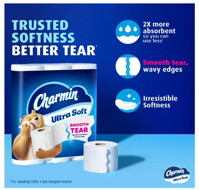 ·VOTED #1 PRODUCT OF THE YEAR: Charmin Ultra Soft Smooth Tear was voted #1 Product of the Year (Bathroom Essentials Category, Survey of 40,000 people by Kantar)