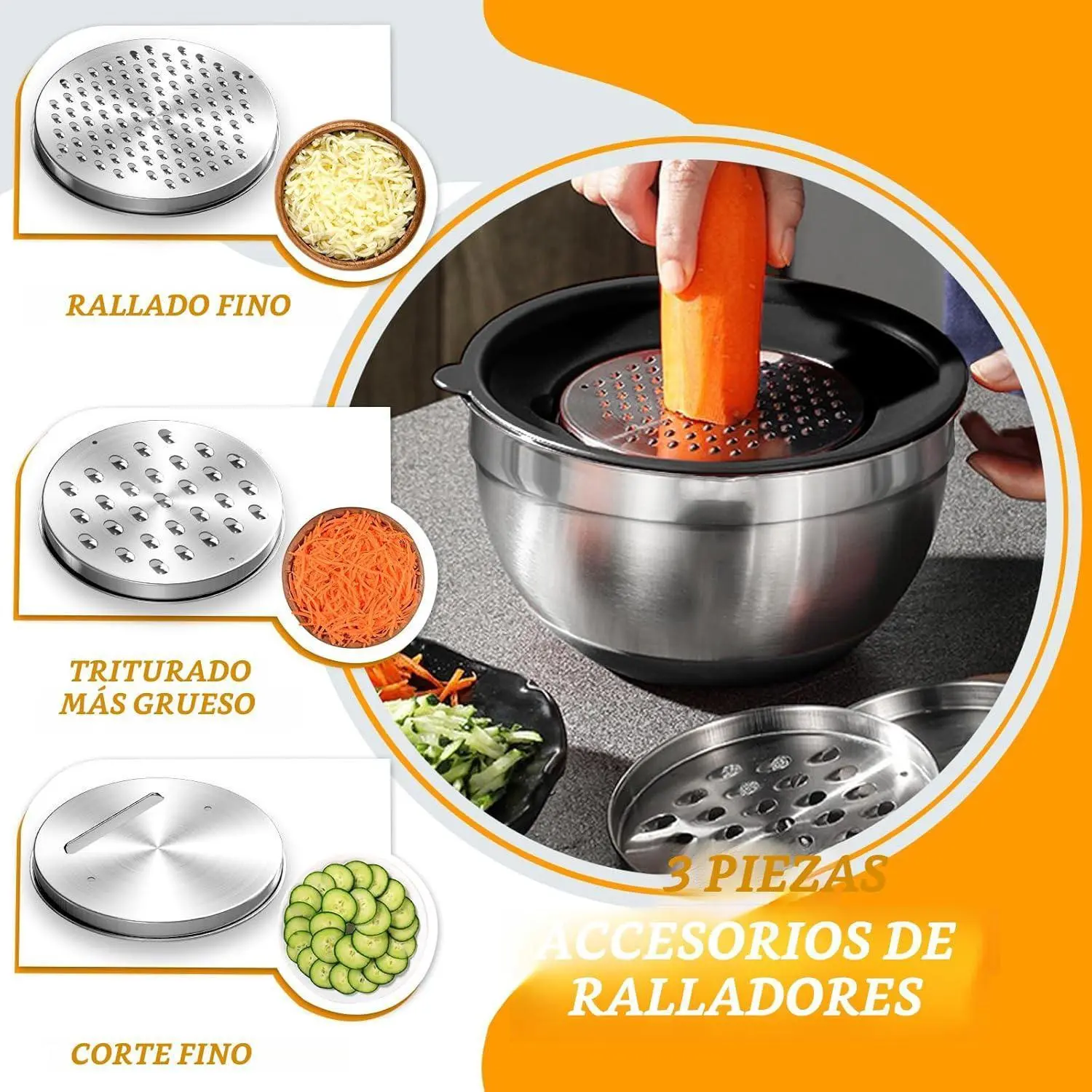 ·AIRTIGHT LIDS & 3 GRATER ATTACHMENTS:The airtight lids that come with this mixing bowl set make it easy to store ingredients and leftovers without worrying about spills or leaks. 3.5qt had a removable lid inside the main lid, for adding contents or pairing it with your blender without removing the entire lid to prevent splash. This bowl set comes with 3 different grater attachments (slicing/grating/shredding) just shred or slice right into the bowl!