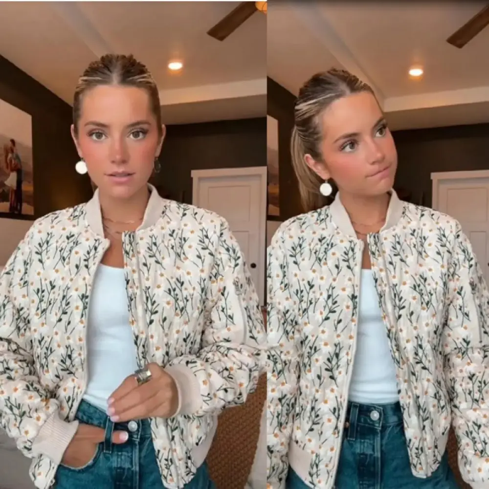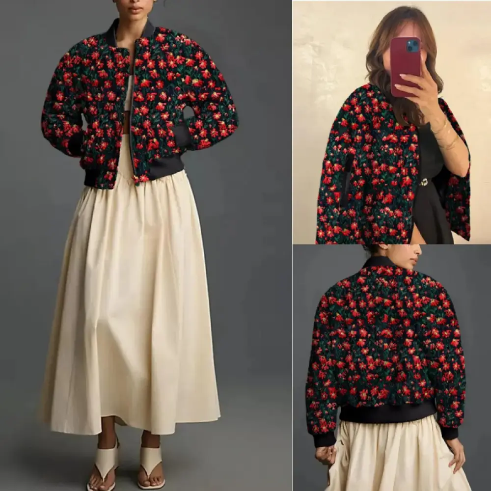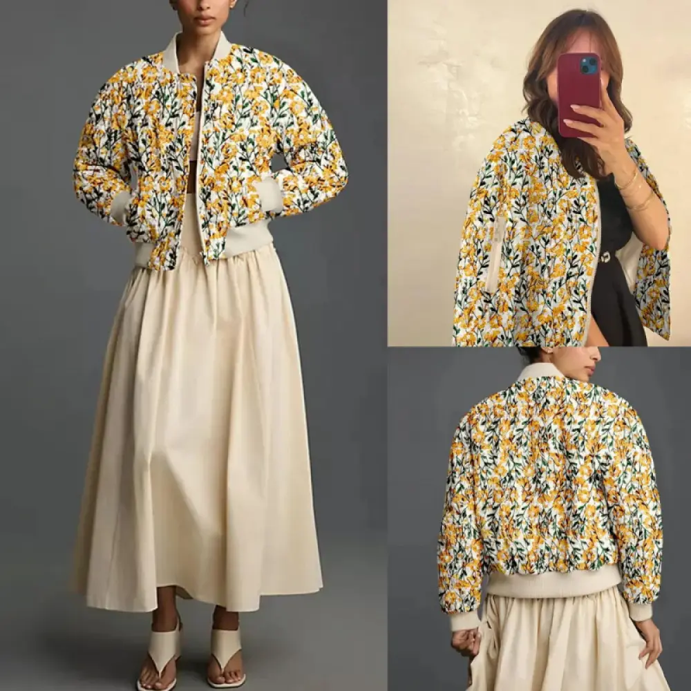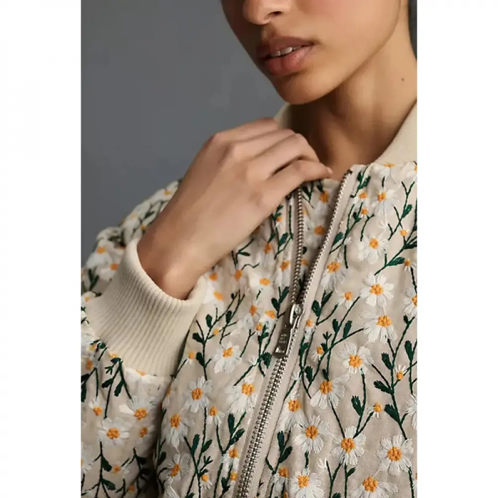 ✨Elevate your style with this daisy-embroidered cropped bomber jacket.Crafted from breathable ramie linen, it offers a fresh, feminine look.The elegant daisy embroidery adds a touch of elegance.The cropped length flatters your silhouette, while puffer long sleeves with ribbed knit cuffs ensure comfort and style.