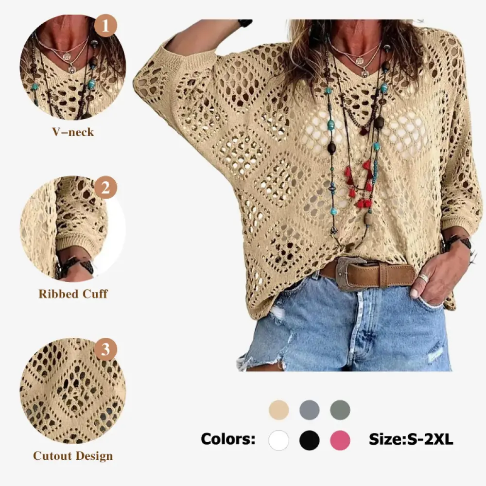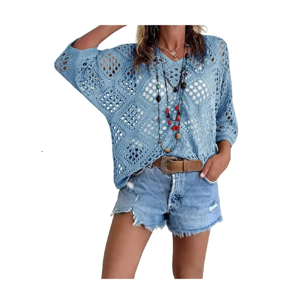 🌞Crafted from premium lightweight fabric, this crochet top is soft, breathable, and gently stretchable.Ideal for warm weather wear and comfortable all-day use.