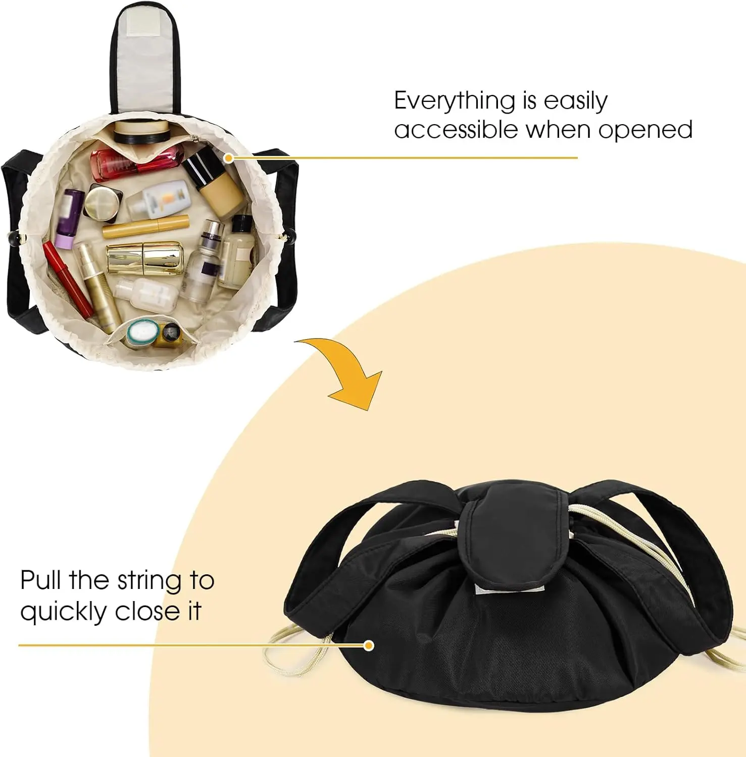 Portable Makeup Bag, Makeup Organizer Pouch, All in One Lazy Drawstring Makeup Bag for Beauty Essential for Home Travel & Business Trips, Stylish and Easy To Use Storage Solution