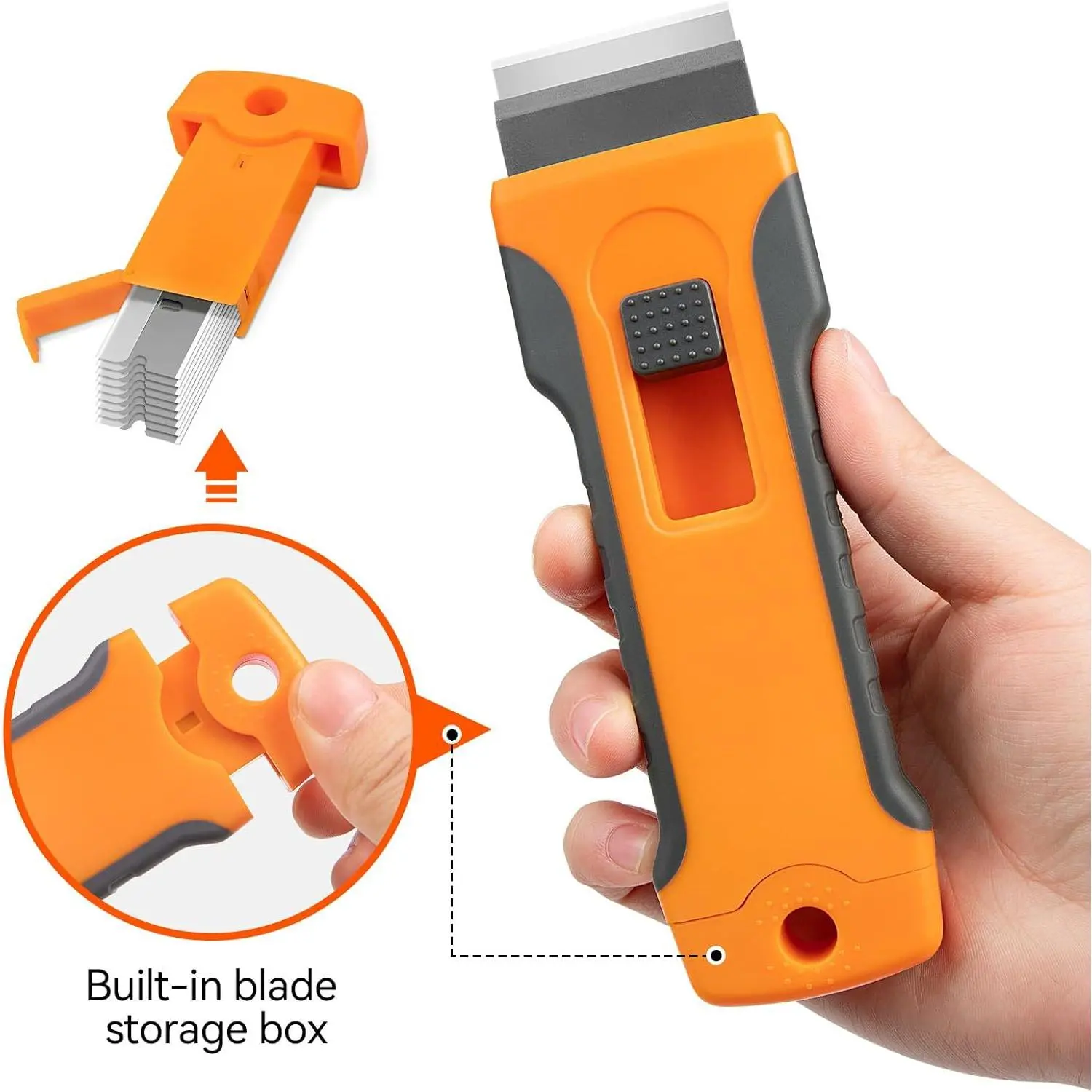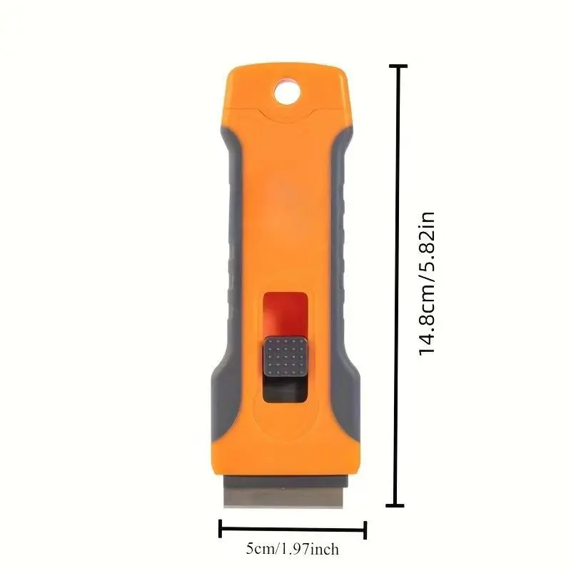 TWO-IN-ONE SCRATCHER: This 2-HEADED SCRATCHER CLEANING TOOL will be a must-have helper in your home.plastic blade is scratch-free and works on fine surfaces like plastic, wood and paint.The single-edged metal blade removes stubborn stains, perfect for stubborn grease and scorch stains on kitchen stoves, ovens and grills.