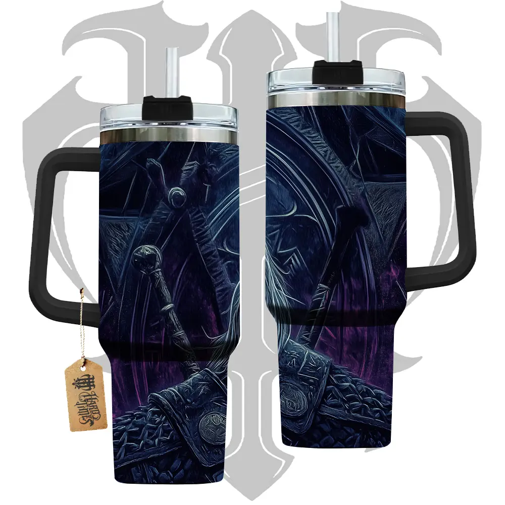 HardTimesMerch - The Witcher #1 40oz Handle Tumbler Stainless Steel Travel Mug, Game Inspired Vacuum Insulated Cup, Large Iced Coffee Tumbler, Manga Fighter Drinkware, Gamer Gift for Him Her