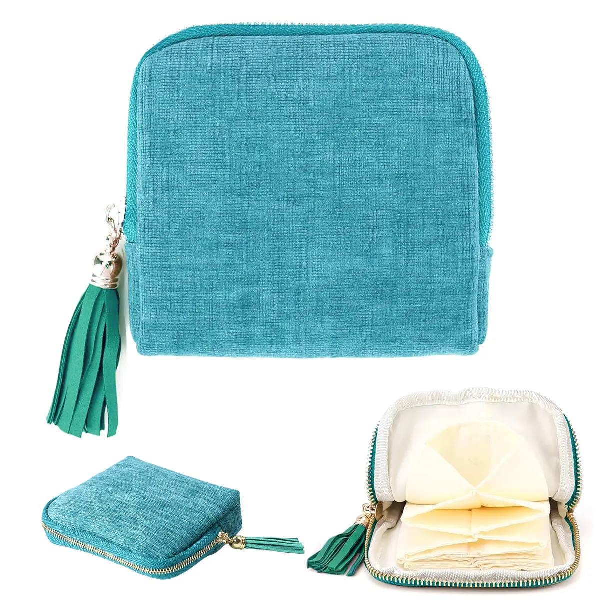 Fashionable Solid Color Jewelry Storage Bag, Luxury Tassel Zipper Pouch, Portable Travel Case for Rings Necklaces Bracelets, Soft Velvet Anti-Tarnish Organizer, Compact Gift for Women