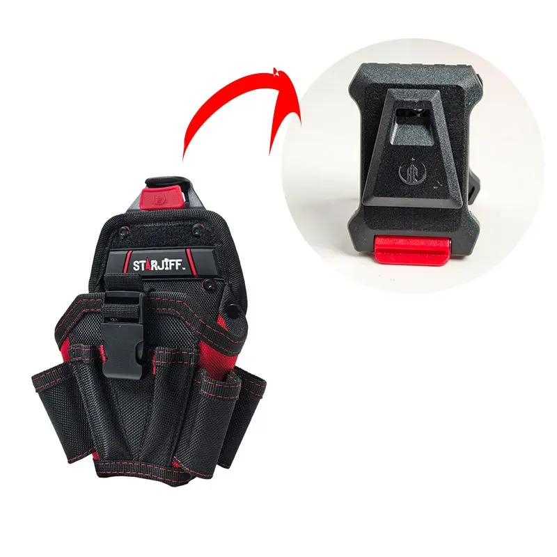 The “quick installation” design is adopted, which usually means that it is fixed by a plug-in mechanism, and the tool bag can be installed or removed without completely removing the belt, which is convenient to change the position of the waist bag according to demand during work.