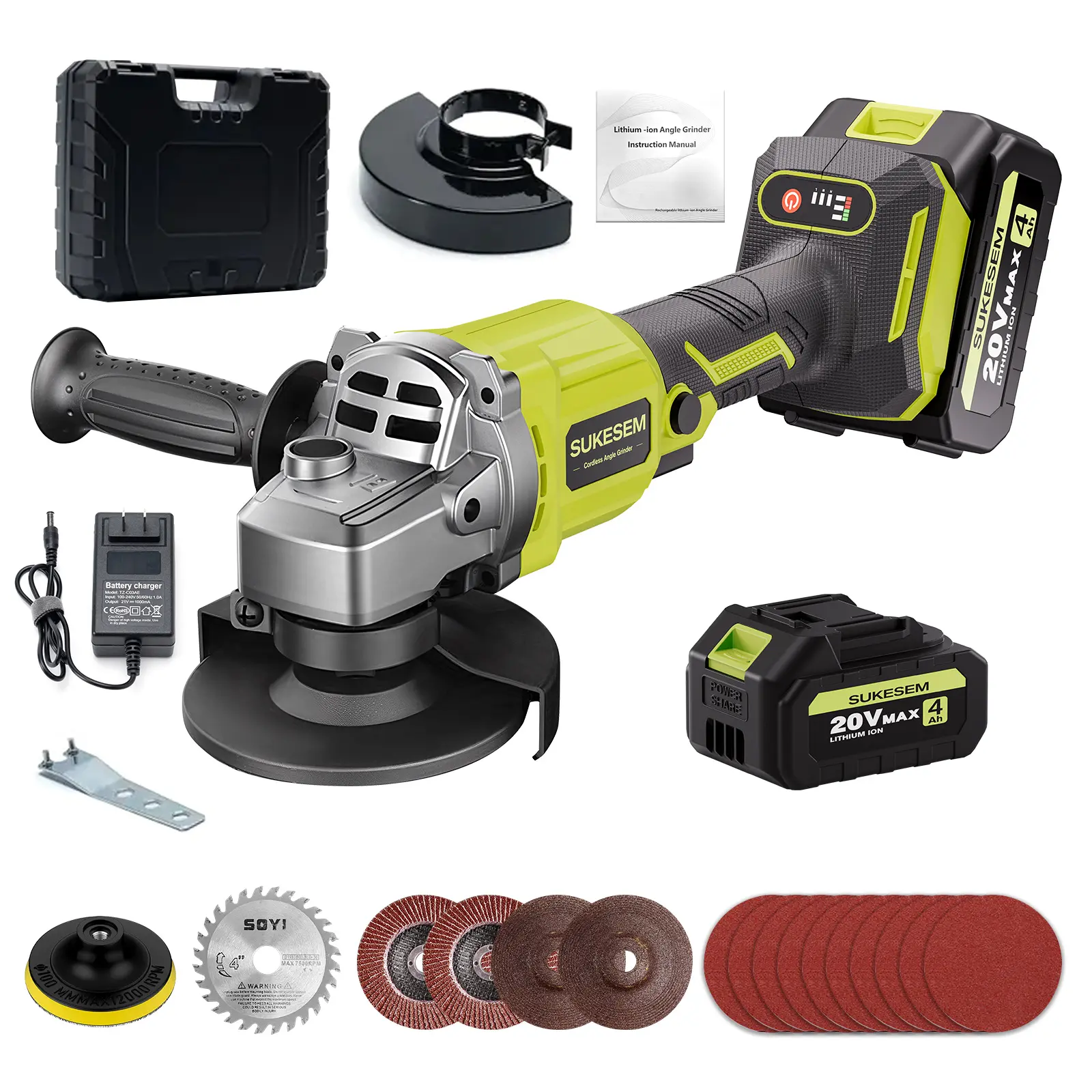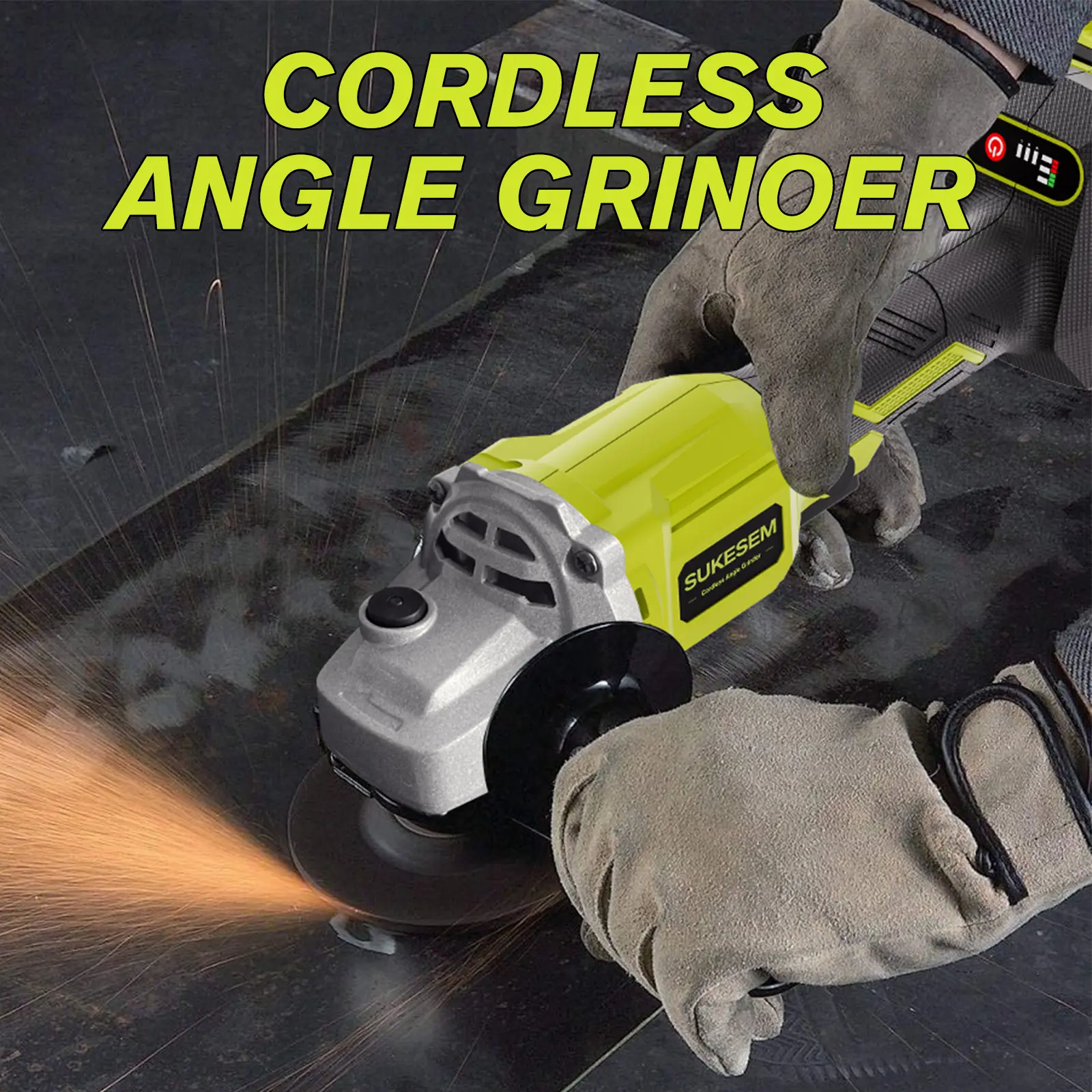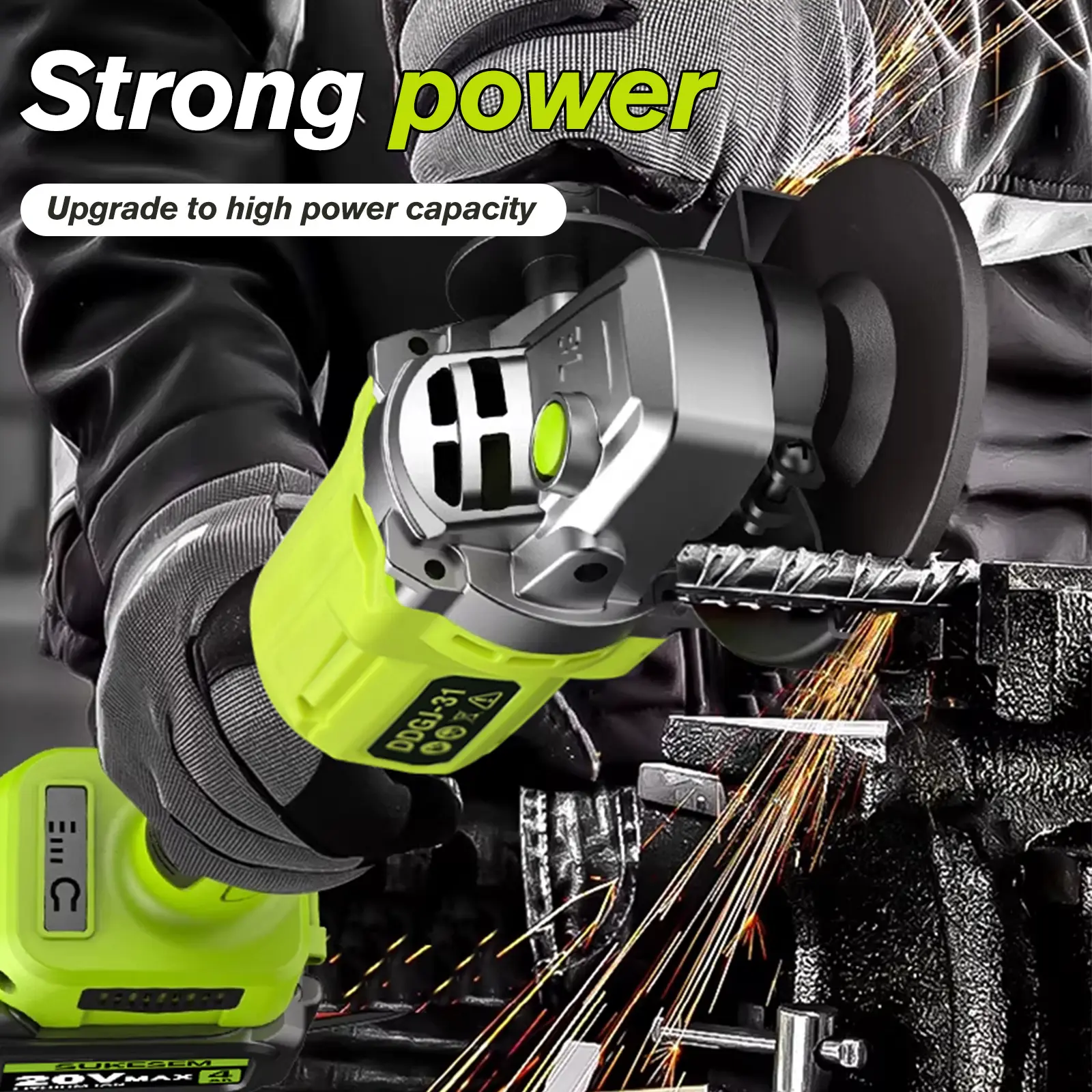 Rechargeable angle grinder, cordless polishing machine, equipped with ion battery, fast charger and complete accessories. Suitable for wood, metal, plastic, and stone