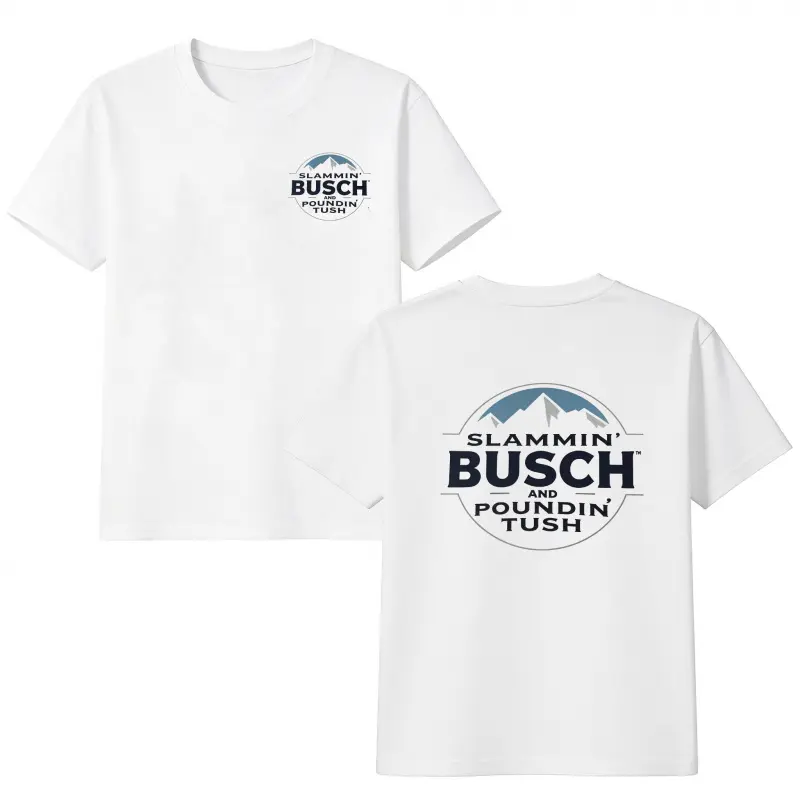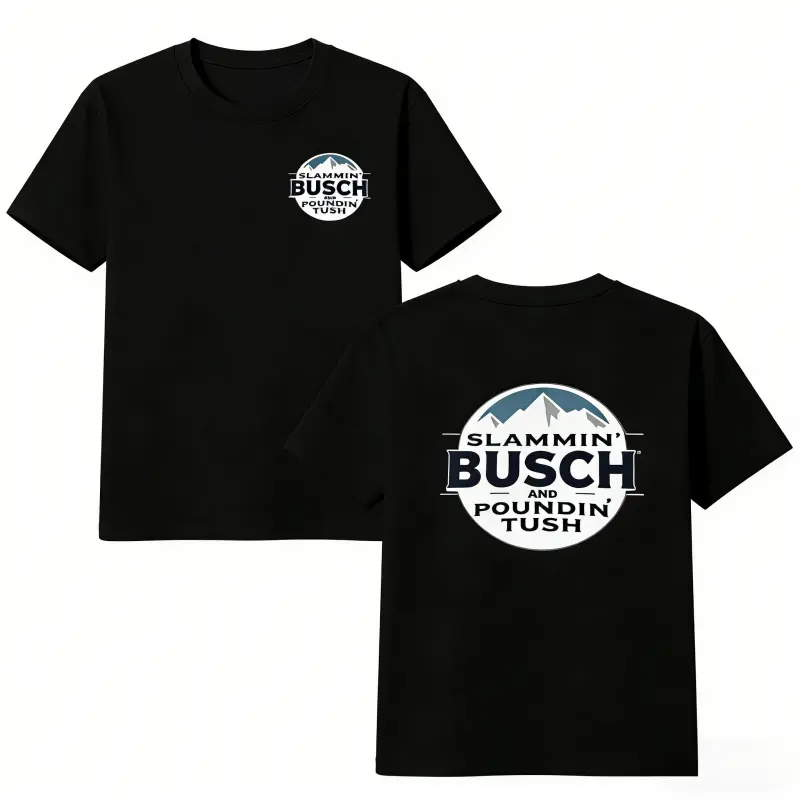 Slammin Busch And Poundin Tush Shirt, Funny Busch Light T-Shirt, Vintage Style Unisex Short Sleeve Tee, Casual Cotton Menswear Top, Trendy Shirt