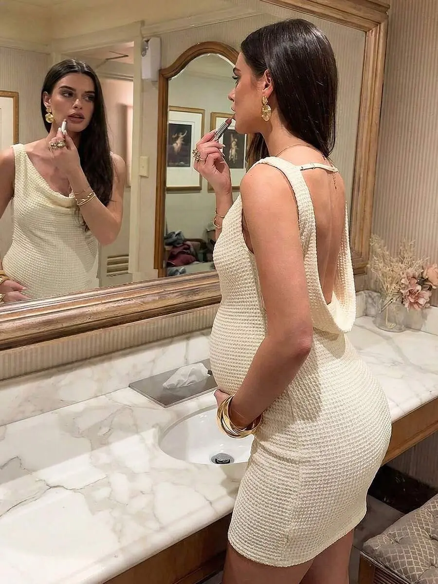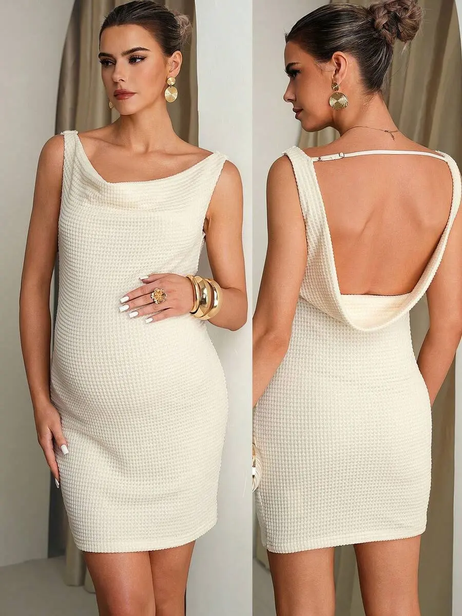 ELLIOTTWII Maternity Solid Color Plunging Neckline Backless Sleeveless Fashionable Dress Summer Outfits Maternity White Dress Bump Friendly Dress Pregnancy Dress For Photoshoot Wedding Guest Dress Elegant Dresses