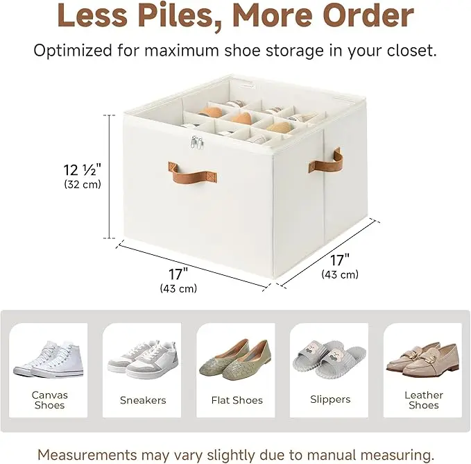 ·SPACIOUS DIMENSIONS: Measures 17 inches long by 17 inches wide by 12.5 inches high, providing ample storage capacity for multiple pairs of shoes