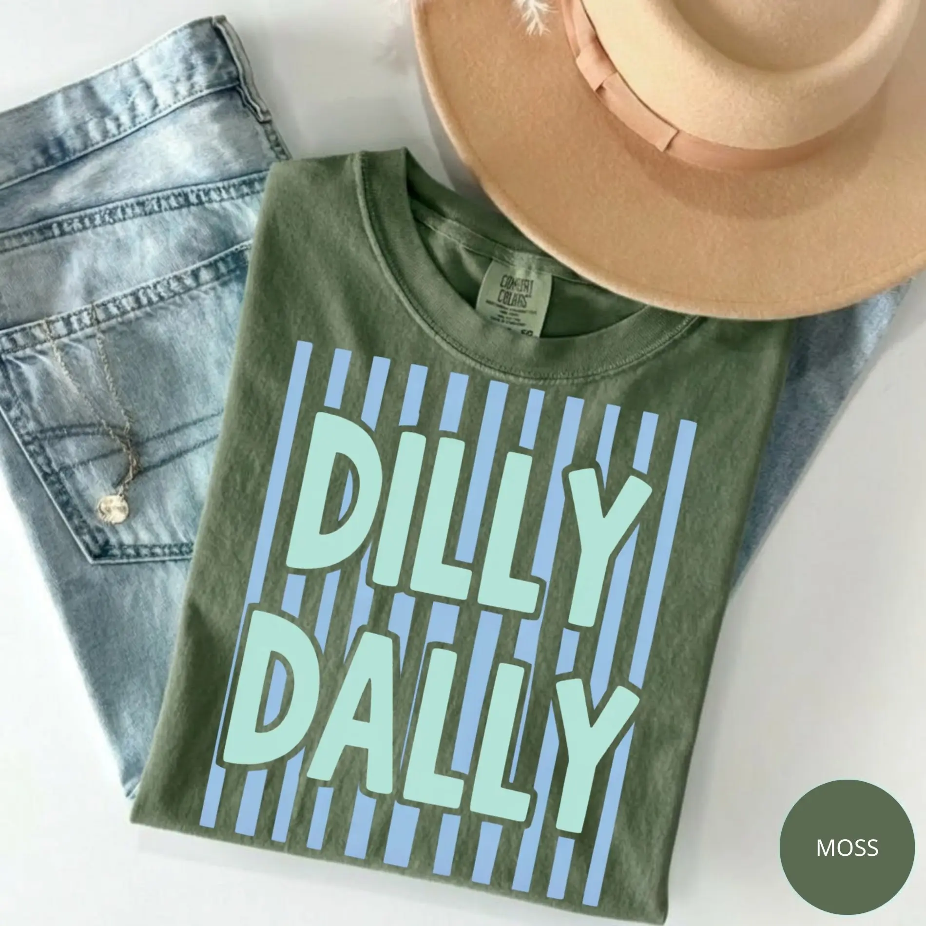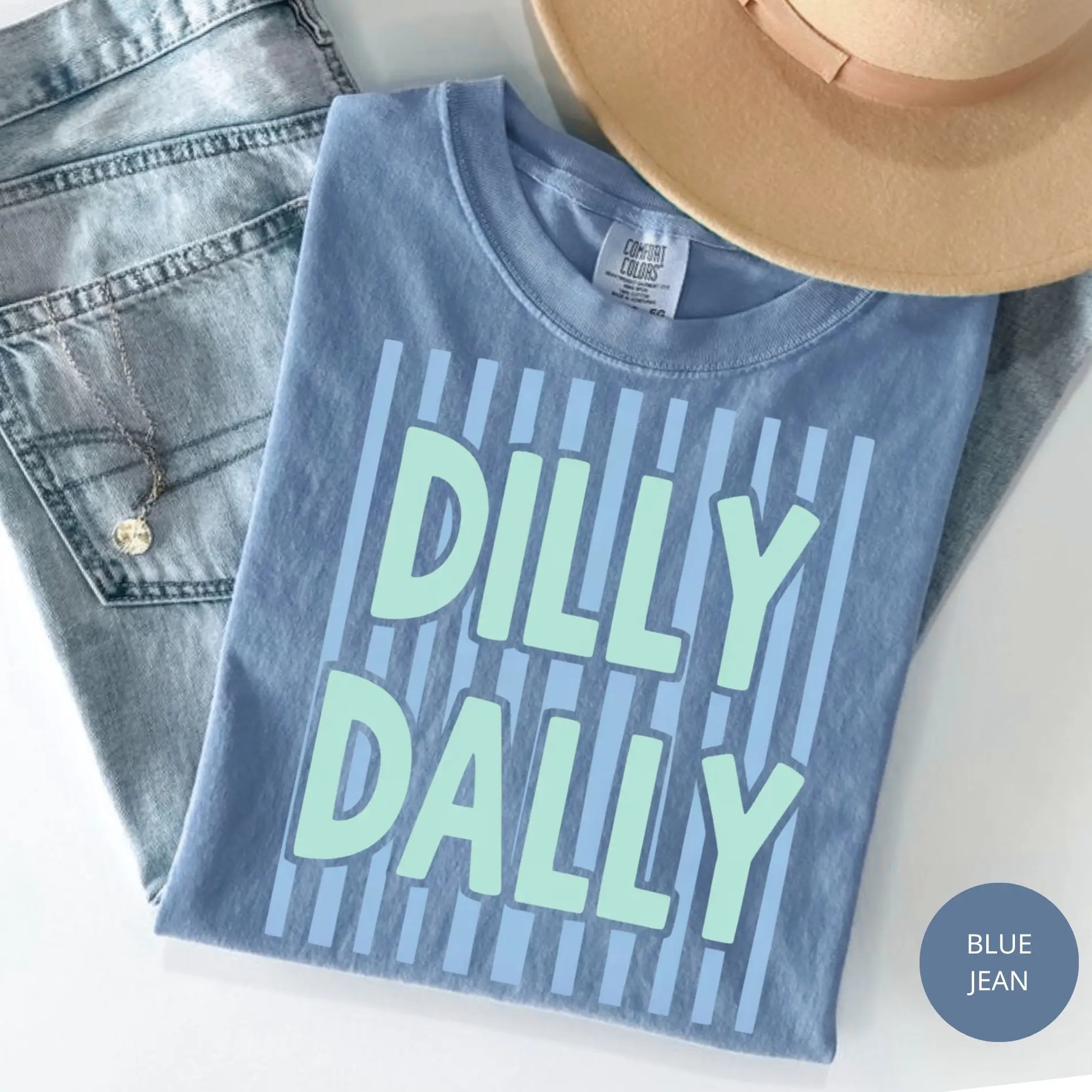 Comfort Colors Dilly Dally Shirt, Preppy Striped Graphic Tee, Spring Summer Women’s T-Shirt, Cute Aesthetic Casual Top, Gift for Her Lover Top