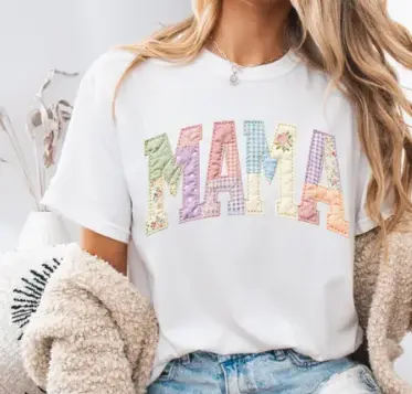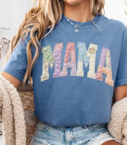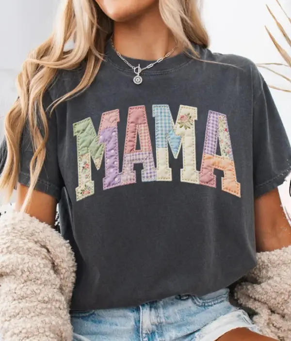 5. Mother's Day gift Comfort Colors Faux Quilted Patchwork Mama Shirt Vintage Floral Mama Tee Pastel Gingham Mom Shirt Mothers Day Gift For Mom Spring Mama Tee