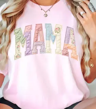 Mother's Day gift Comfort Colors Faux Quilted Patchwork Mama Shirt Vintage Floral Mama Tee Pastel Gingham Mom Shirt Mothers Day Gift For Mom Spring Mama Tee