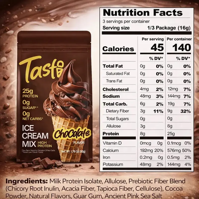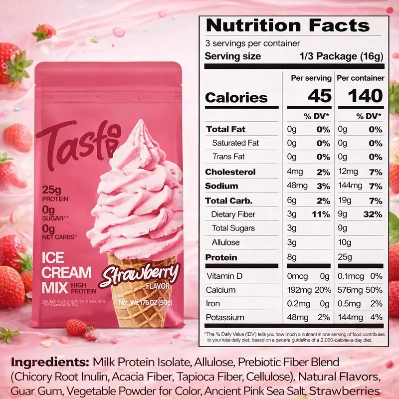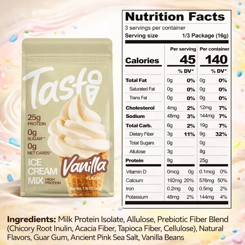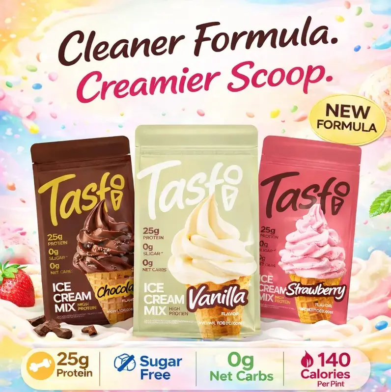 Tasti Protein Ice Cream Mix – Just Add Milk & Toss in Your Ninja Creami. 25g+ Protein, Low Sugar, No Junk. Vanilla, Chocolate, & Strawberry Flavors.