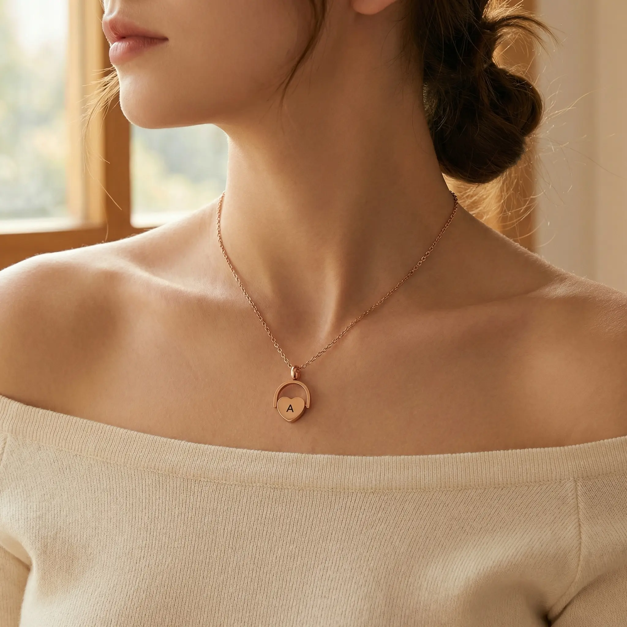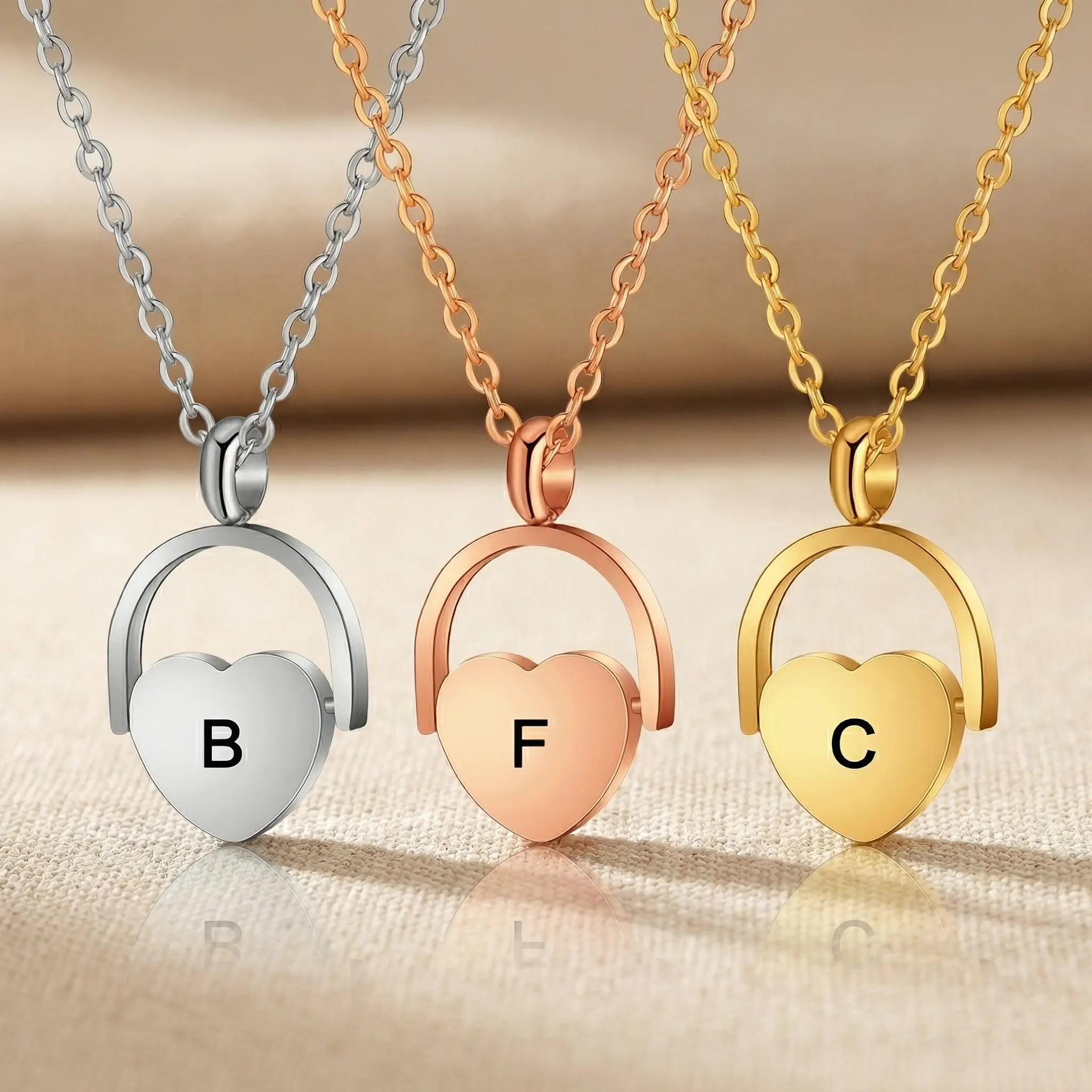 This minimalist heart-shaped necklace features full A-Z letter customization. Its elegant gold finish makes it a perfect gift for birthdays, anniversaries, and Valentine’s Day. The necklace is skin-friendly, made from eco-conscious alloy, hypoallergenic, and long-lasting.