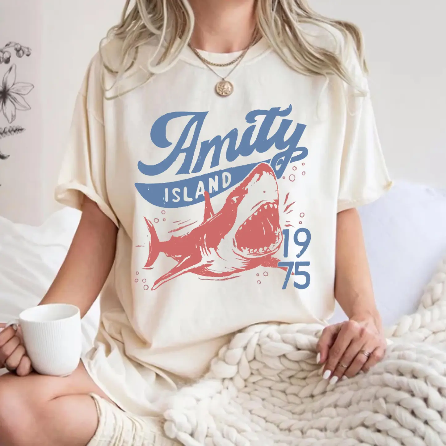 Vintage Horror Movie Graphic Comfort Colors T-Shirt, Retro Shark Scare Generation Amity Island Tee, 1975 Cinephile Fan Gift
