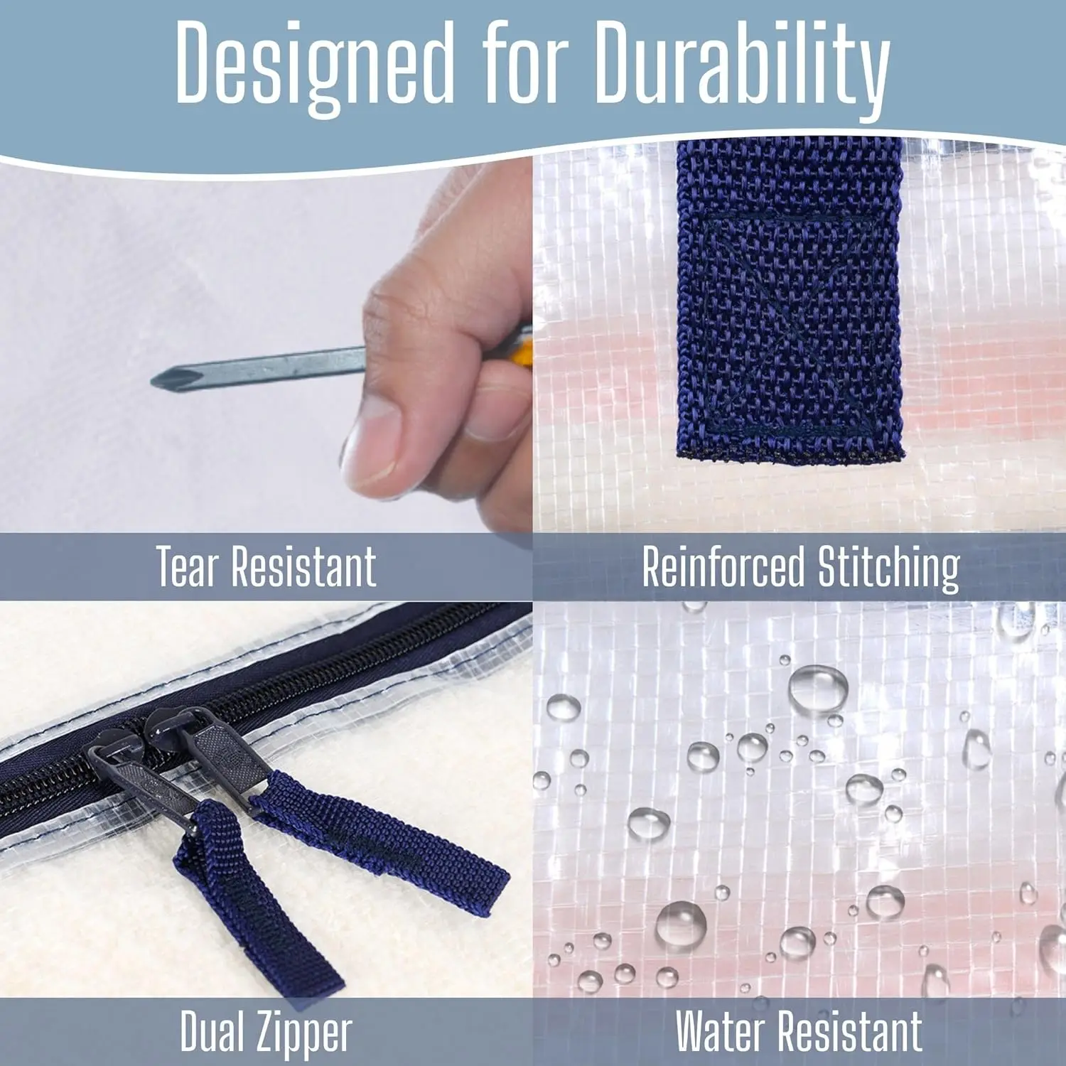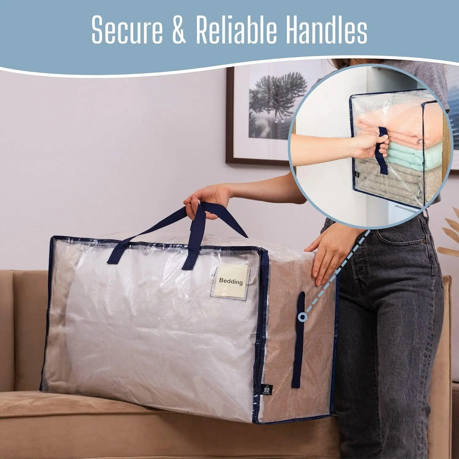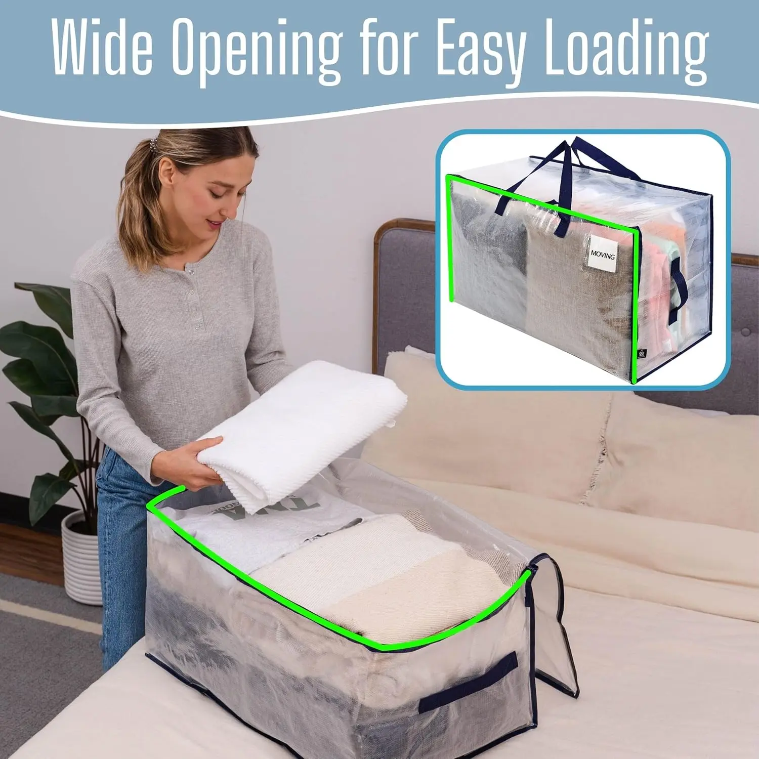 The wide opening design with sturdy 3-sided zippers allows for easy loading and full access, making packing faster and ideal for bulky bedding, oversized items, and clothing storage.