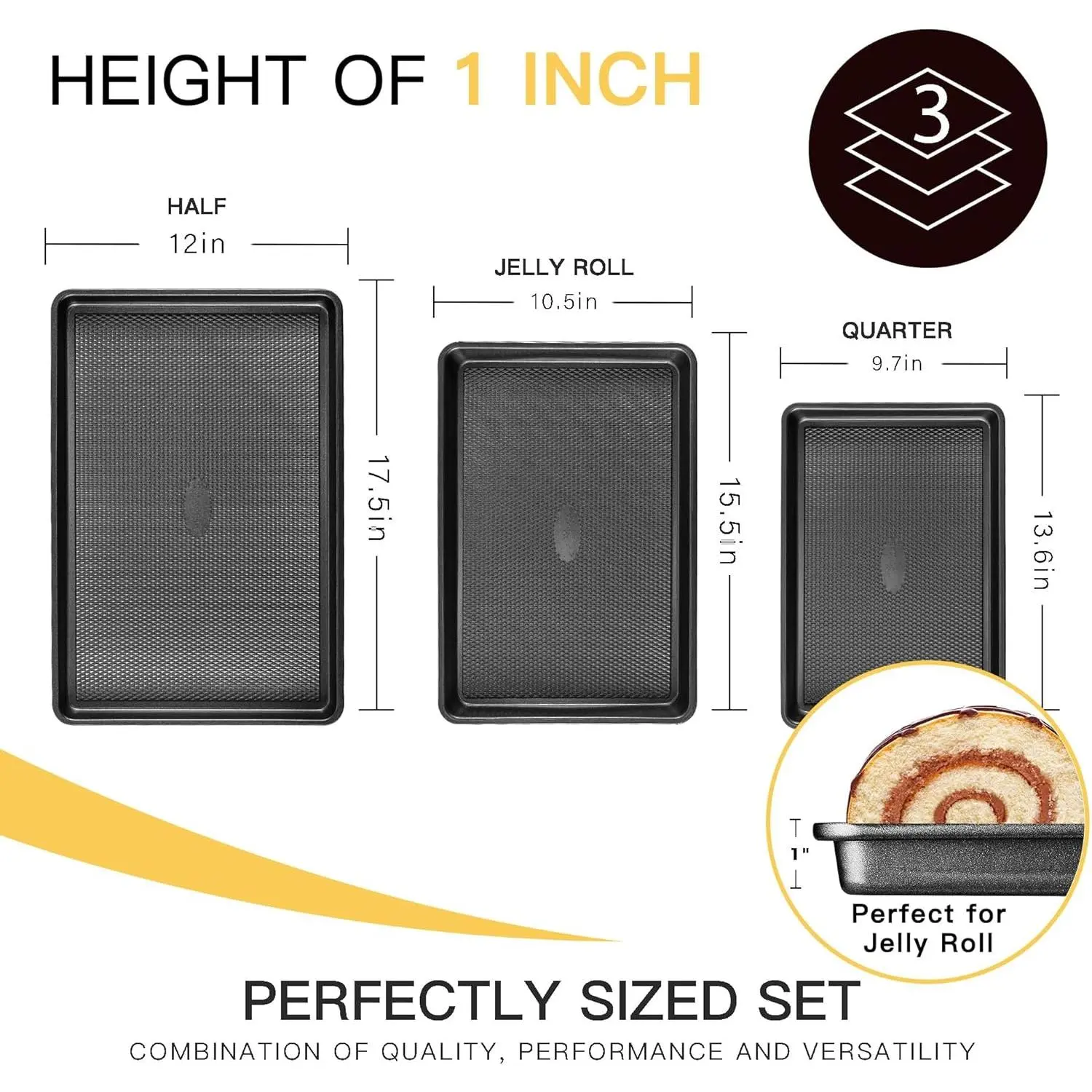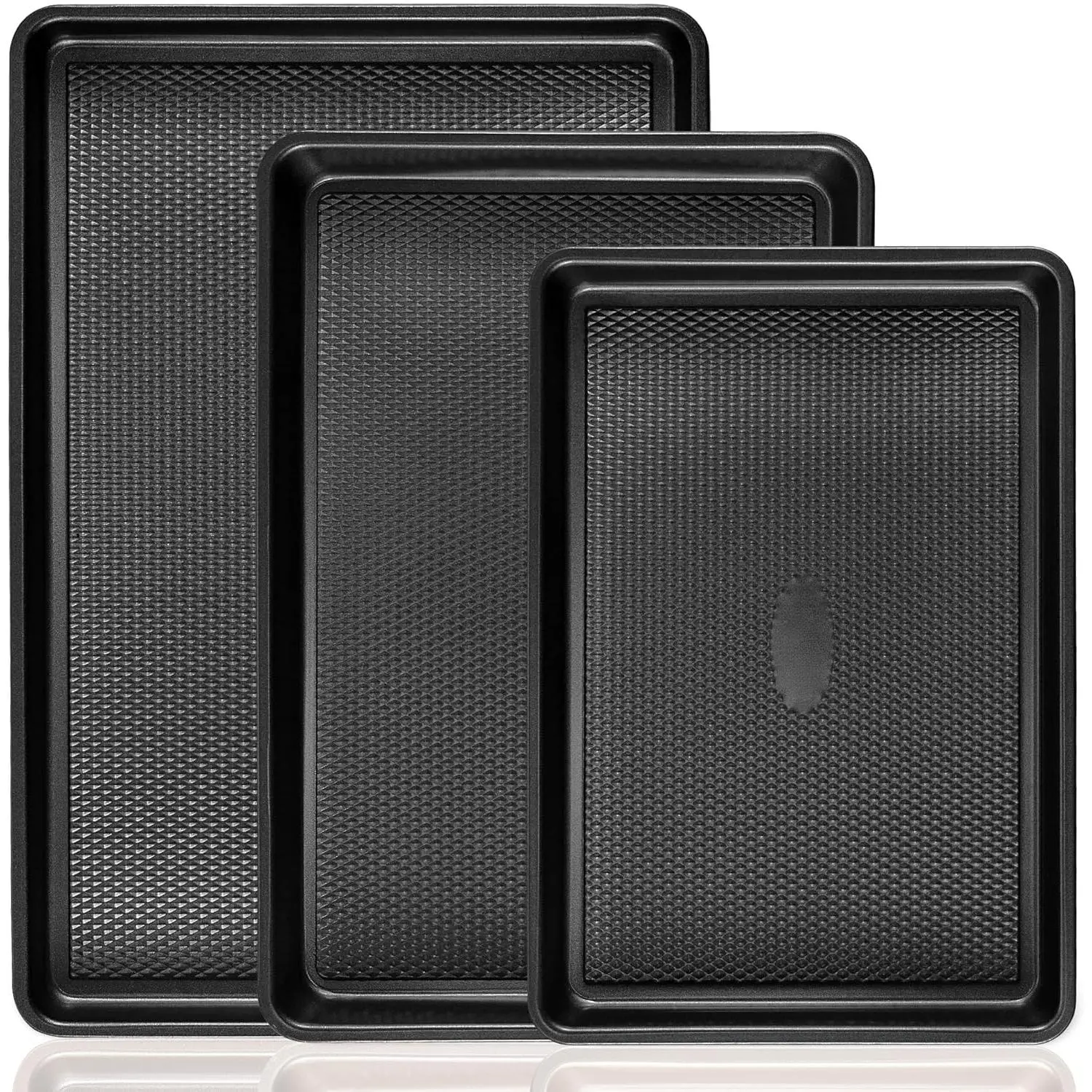 Cookie Sheets for Baking Nonstick Baking Sheet Pan Set of 3, Half/Quarter/Jelly Roll Pan for Oven with Diamond Texture Pattern, 57% Thicker Carbon Steel Cookie Trays, Black