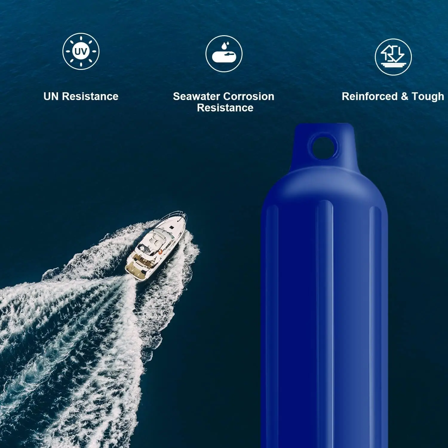 Made with marine-grade PVC, features shock resistance, anti-corrosion and UV resistance.Protecting boats from damage caused by heavy collision between hard surfaces, especially when the boat speeds into the shore or even when two boats collide accidentally.